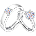 情侣对戒999纯银莫桑石培育莫桑钻银戒指钻戒闭口戒结婚婚戒一对