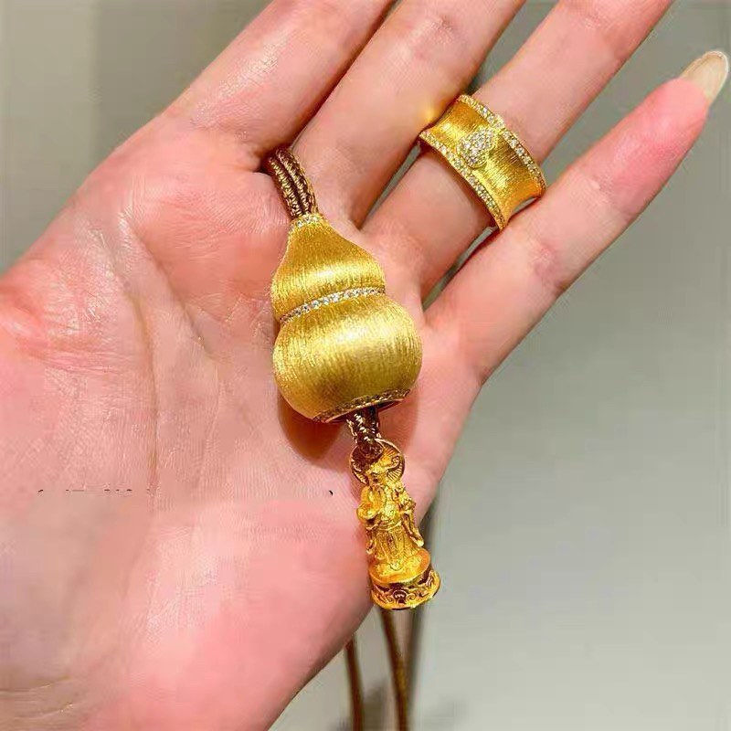 999足银古法财神葫芦银吊坠新中式国风手工拉丝银坠子新年送礼