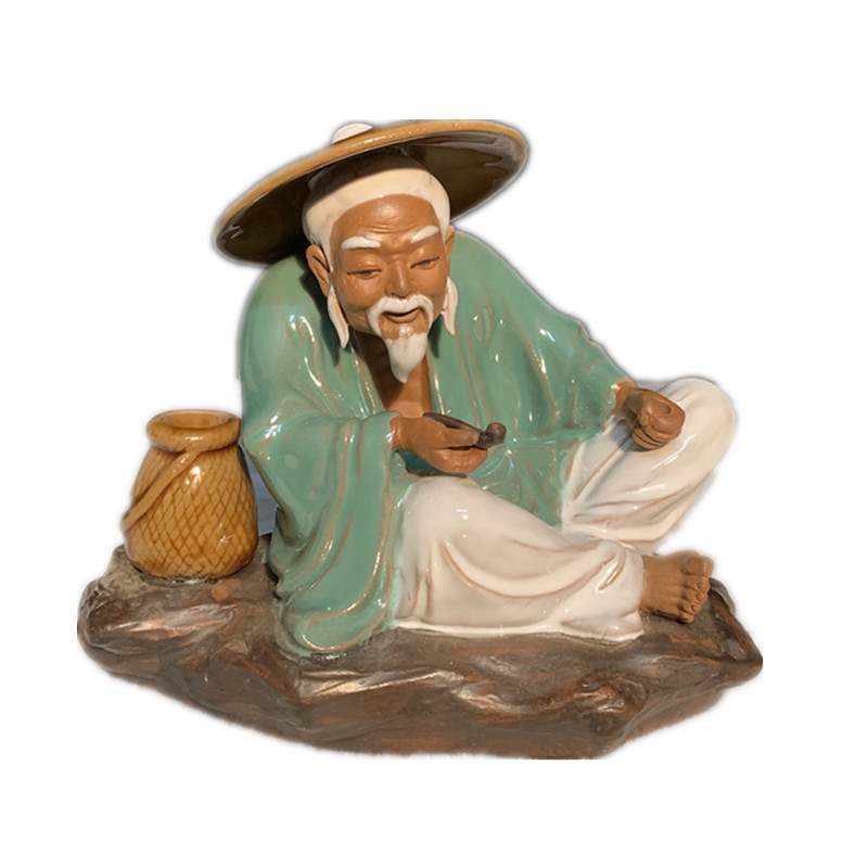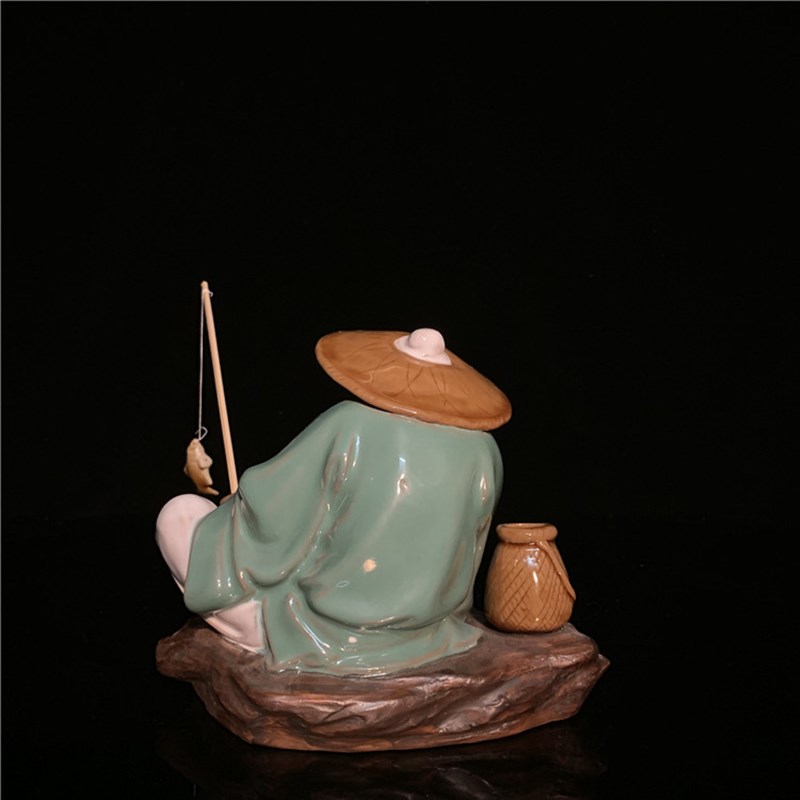 石湾公仔陶瓷摆件创意工艺品假山盘景鱼缸姜太公钓鱼摆件礼品渔翁