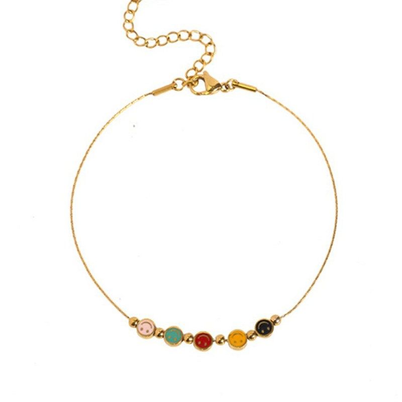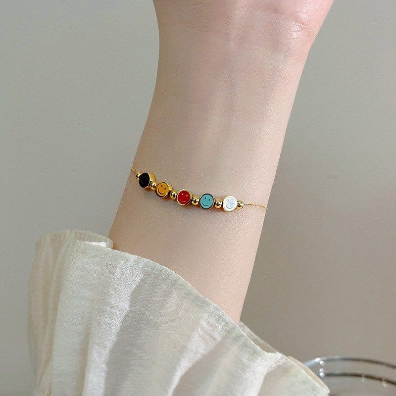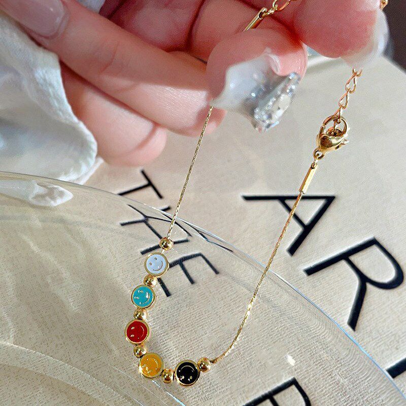 彩色笑脸钛钢手链女轻奢小众设计感18k金色精P致闺蜜细手绳不掉色