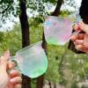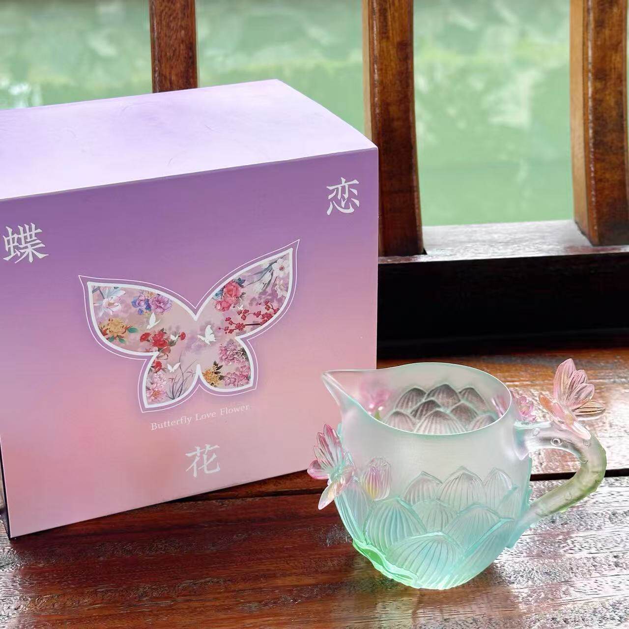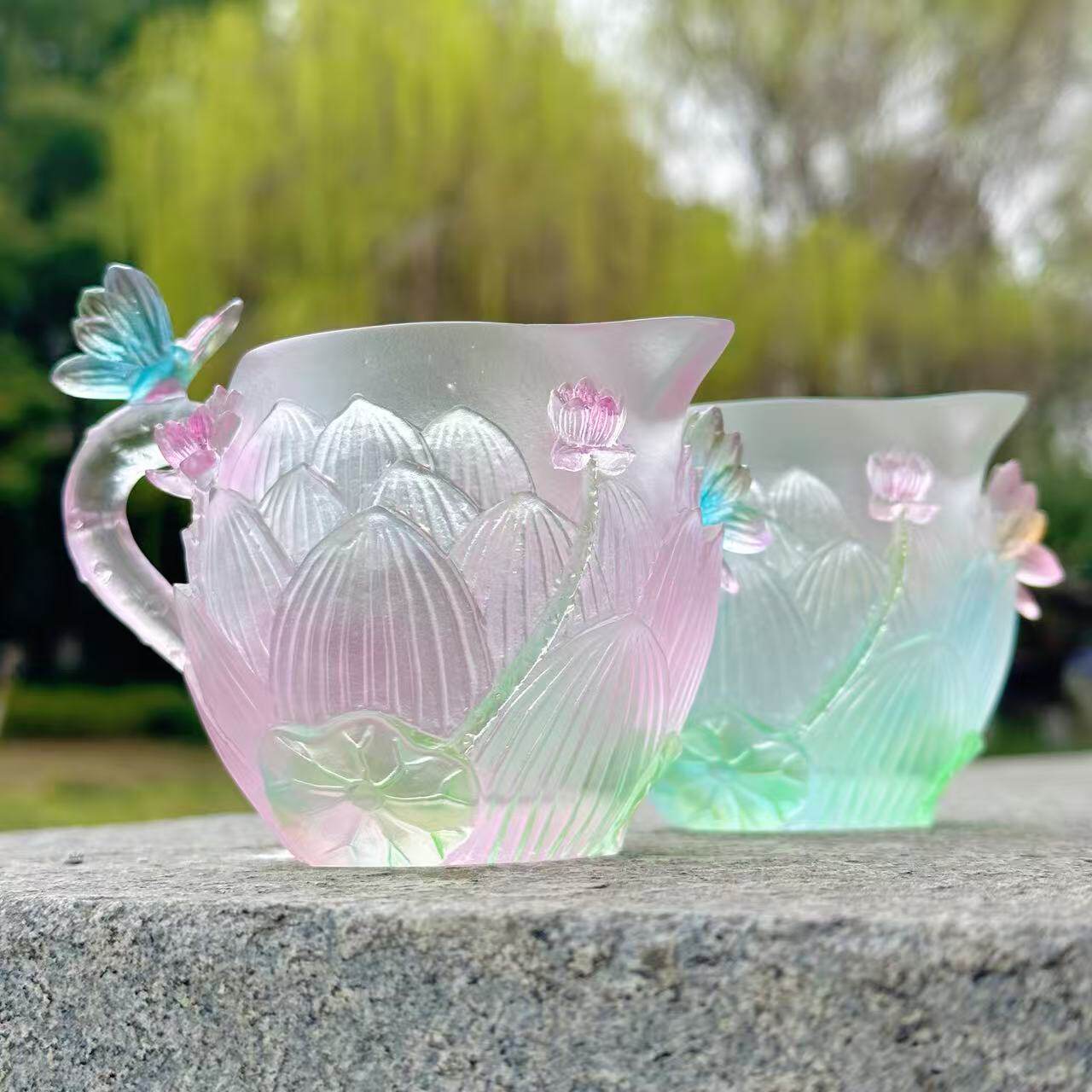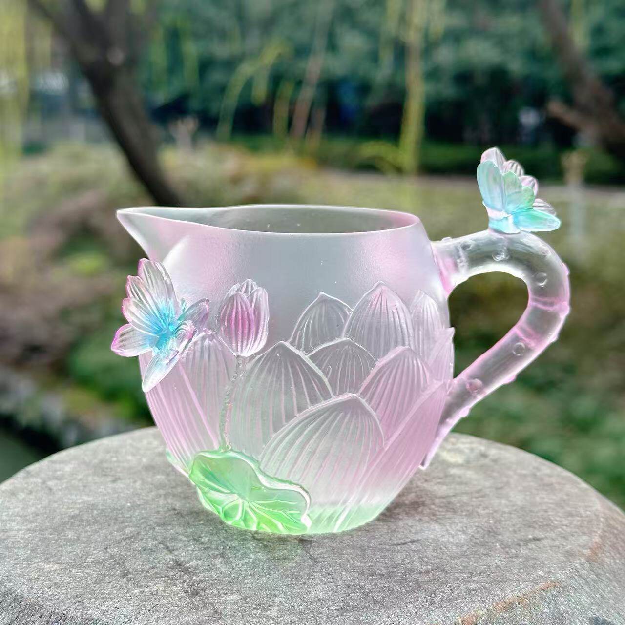【和荷美美】粉绿色渐变琉璃 荷花莲花公道杯茶杯 桌面摆件 7699
