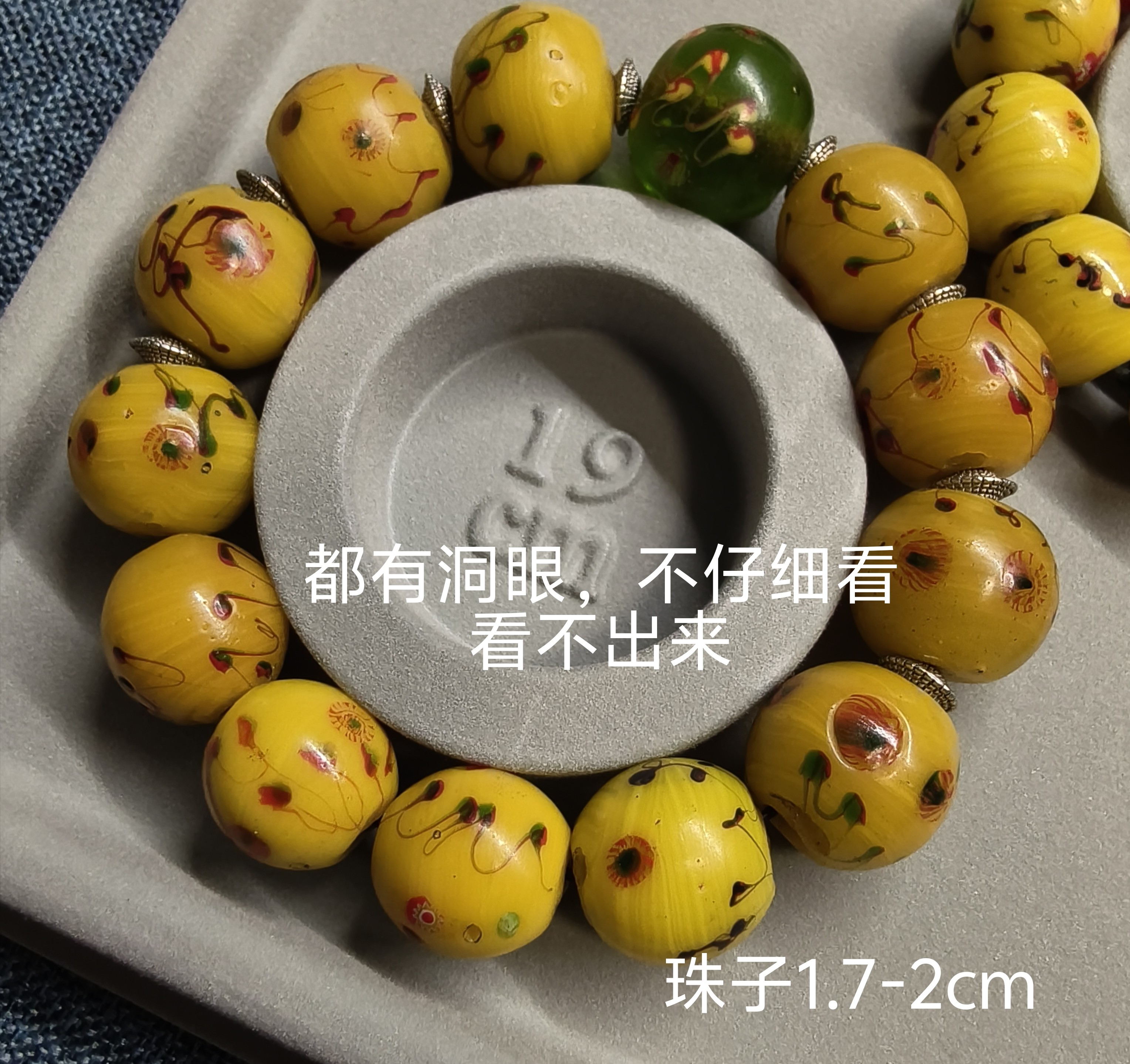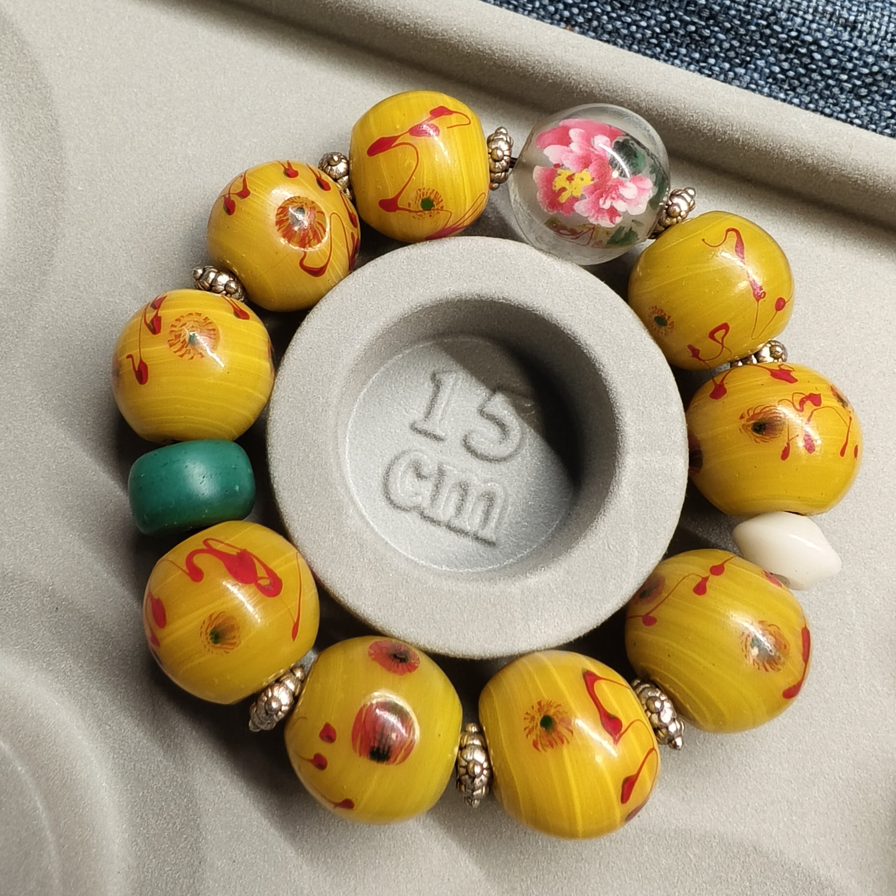 a3FY22宝琉阁年份早鸡油黄色凤眼手工老琉璃手链搭配内画牡丹收藏