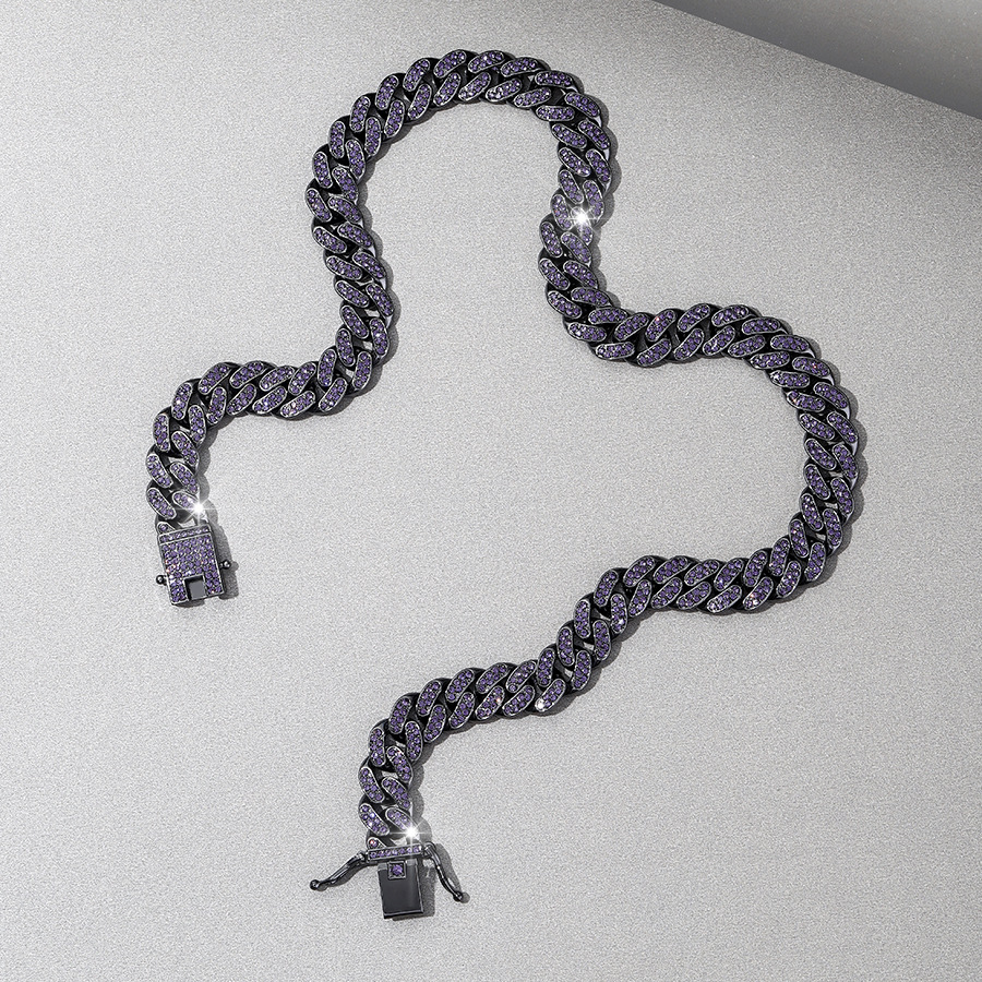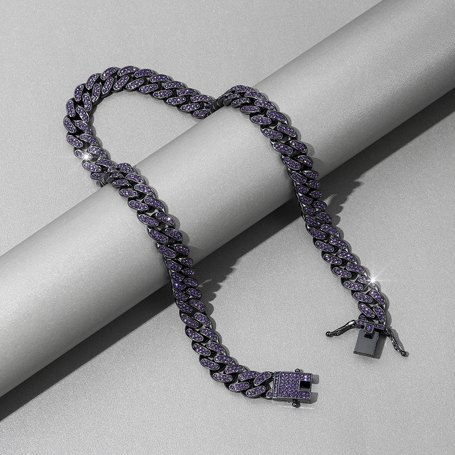 欧美个性新款合金复古满钻紫色手链小众轻奢炫酷闪亮嘻哈古巴项链