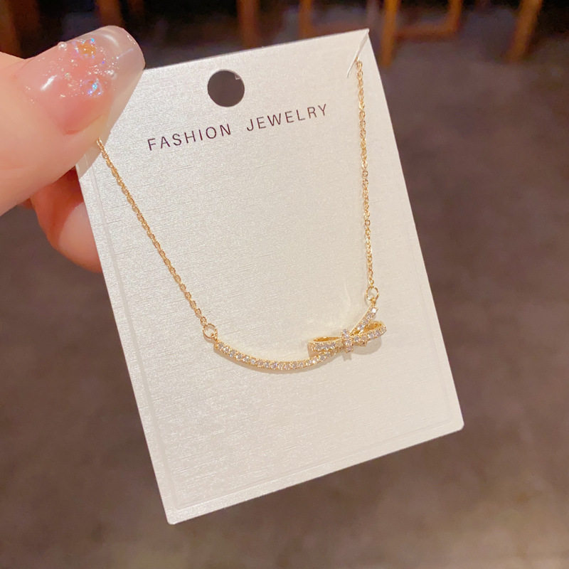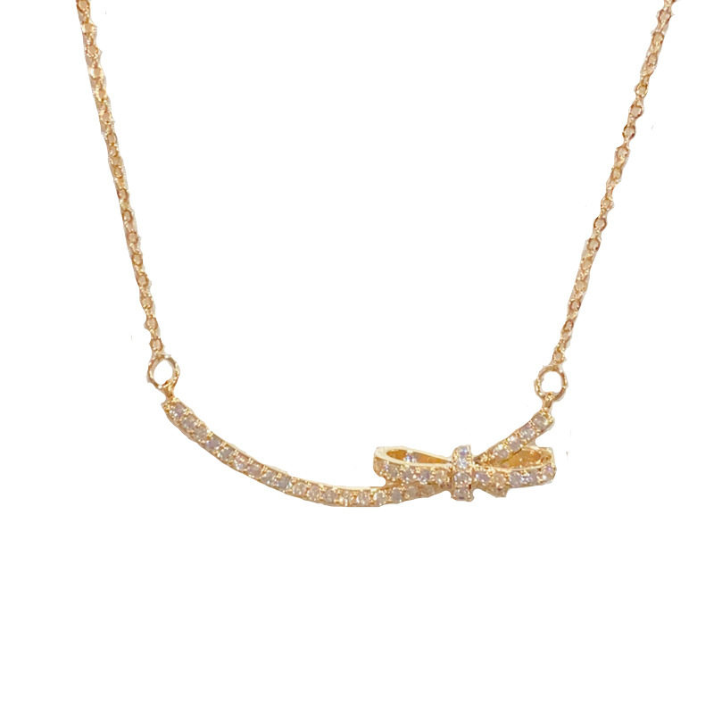 小众时尚百搭锆石蝴蝶结项链女气质轻奢甜美设计感锁骨链配饰