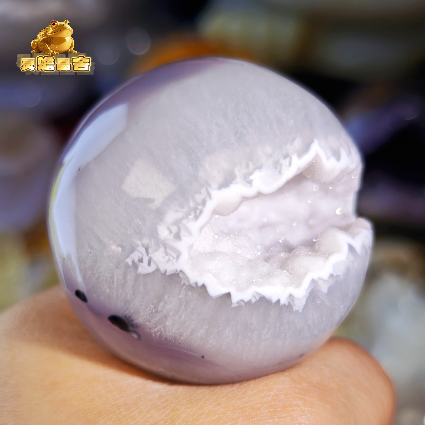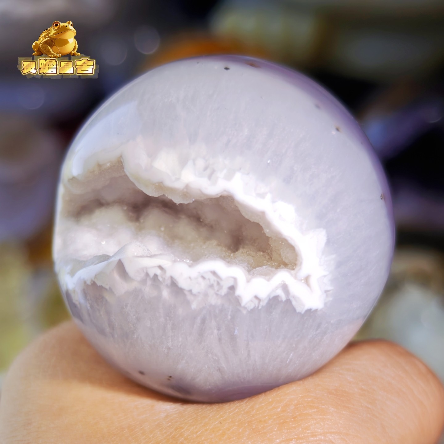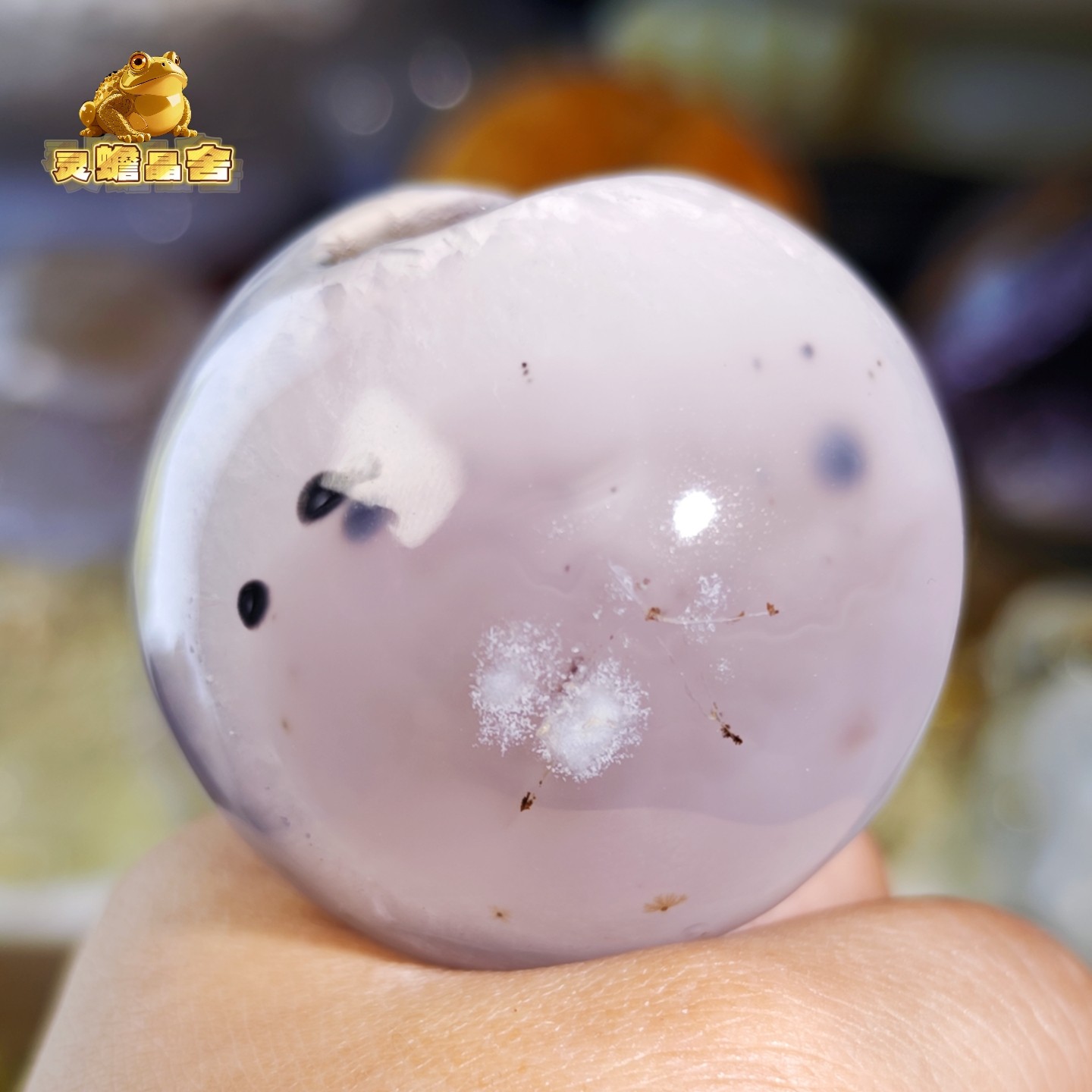 灵蟾晶舍|白色软糖水晶啵啵球开口笑招财聚财摆件手把件装饰