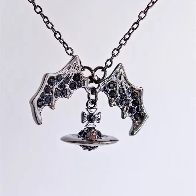 黑色蝙蝠立体土星项链朋克男女夜场炫酷摇滚风轻奢个性百搭锁骨链