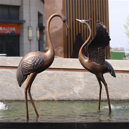 仿铜仙鹤雕塑玻璃钢摆件售楼部庭院水池假山园林景观美陈鸟类装饰