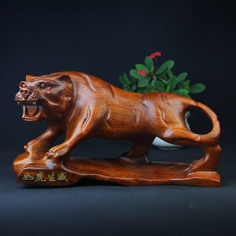 木雕老虎摆件木虎实木雕刻工艺品红木虎啸山林客厅家居装饰品