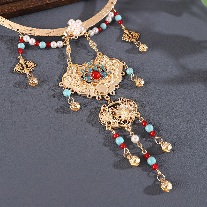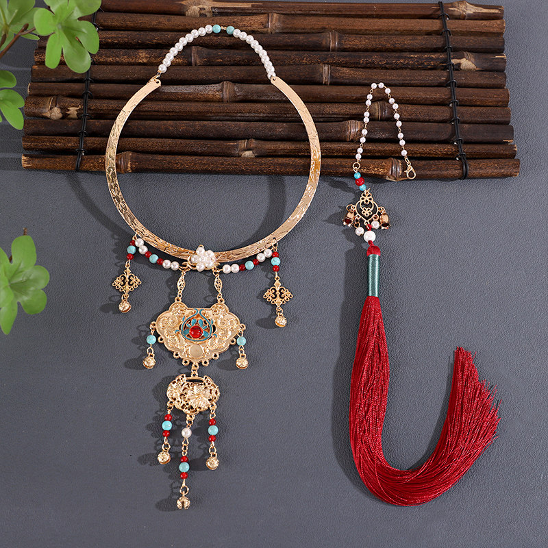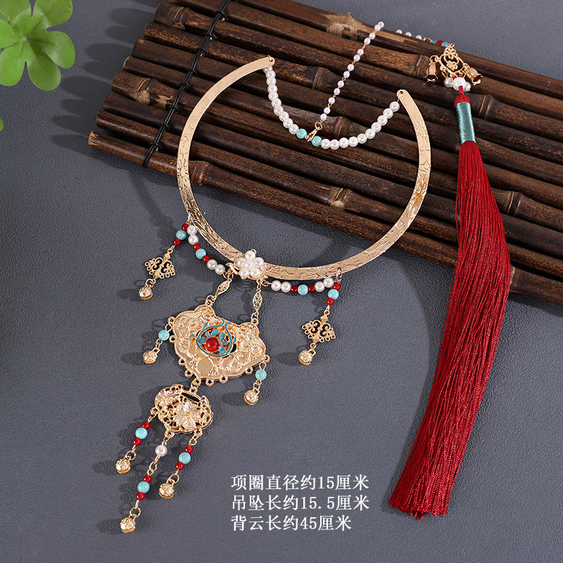 古风平安锁璎珞富贵金宝玉项圈长款明制汉服马面裙配饰品旗袍项链