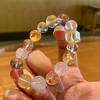 天然水晶多宝手串女款白粉紫黄水晶发晶海蓝宝红胶花手链转运珠串