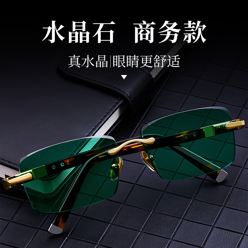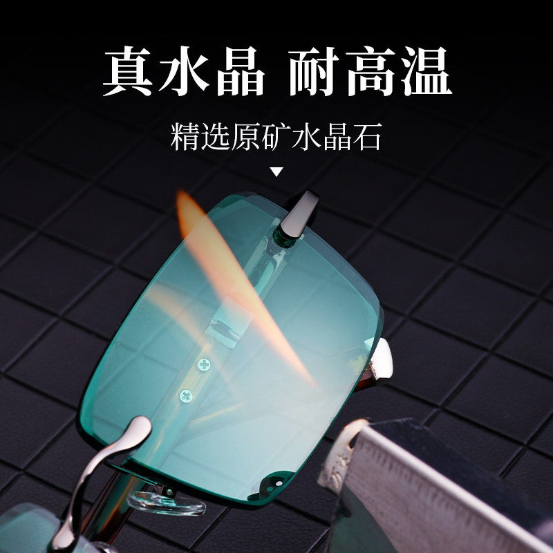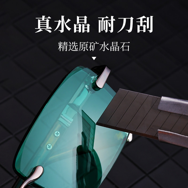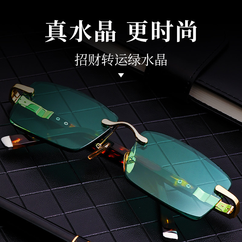 方形墨绿色水晶眼镜真水晶石太阳镜石头镜东海墨绿无框切边切角