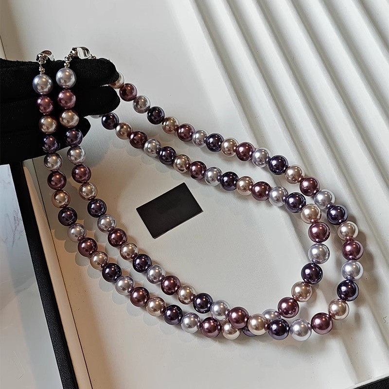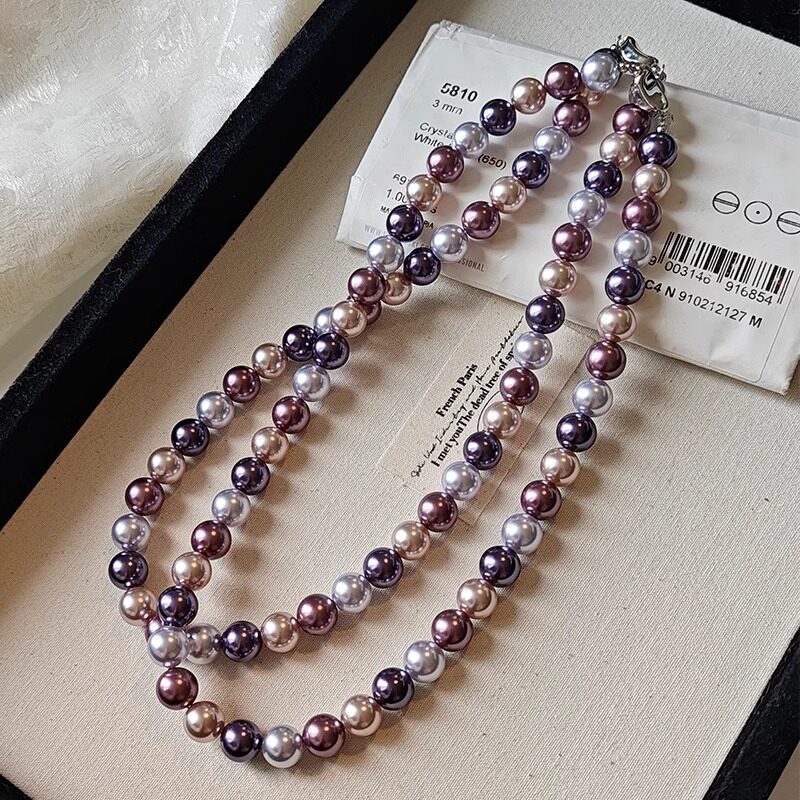 不锈钢元宝扣施家珍珠项链气质混彩紫色麻灰色大溪地黑珍珠项链女