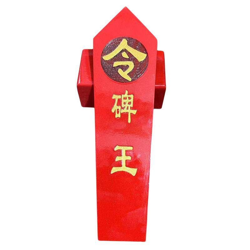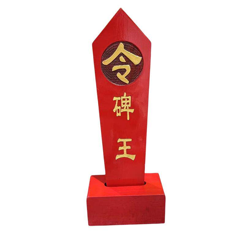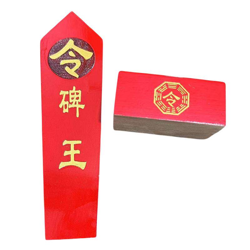 实木雕刻 碑王令箭令牌 八卦底座 红色涂金色
