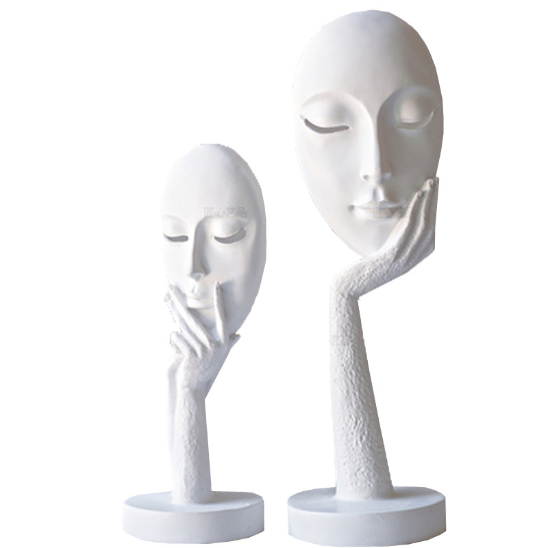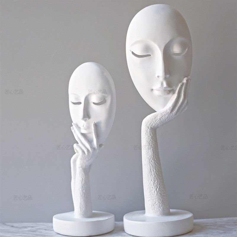 纯白色面具人脸谱创意树脂抽象艺术客厅卧室家居办公书房人脸摆件