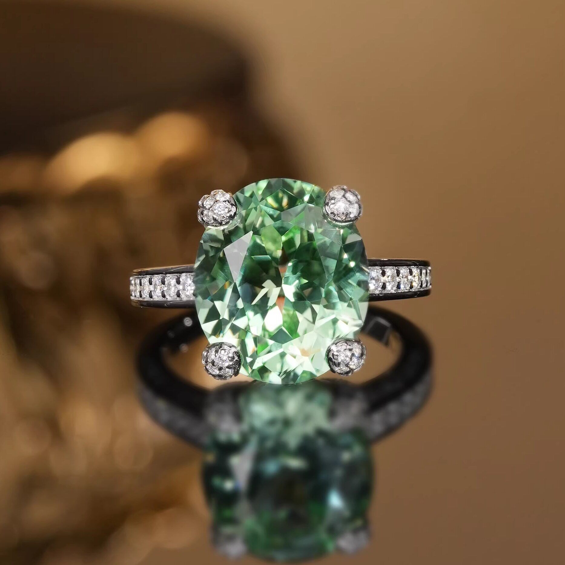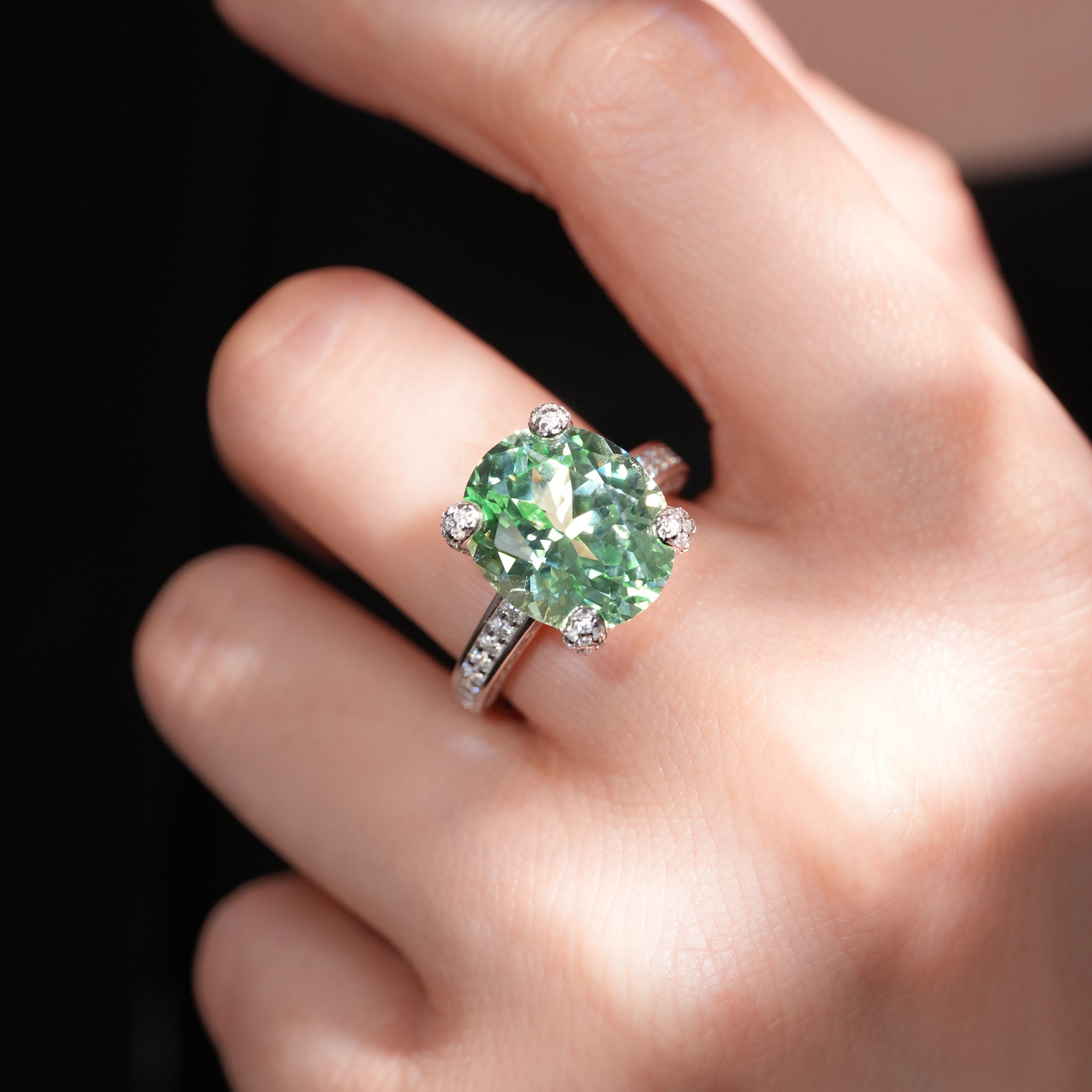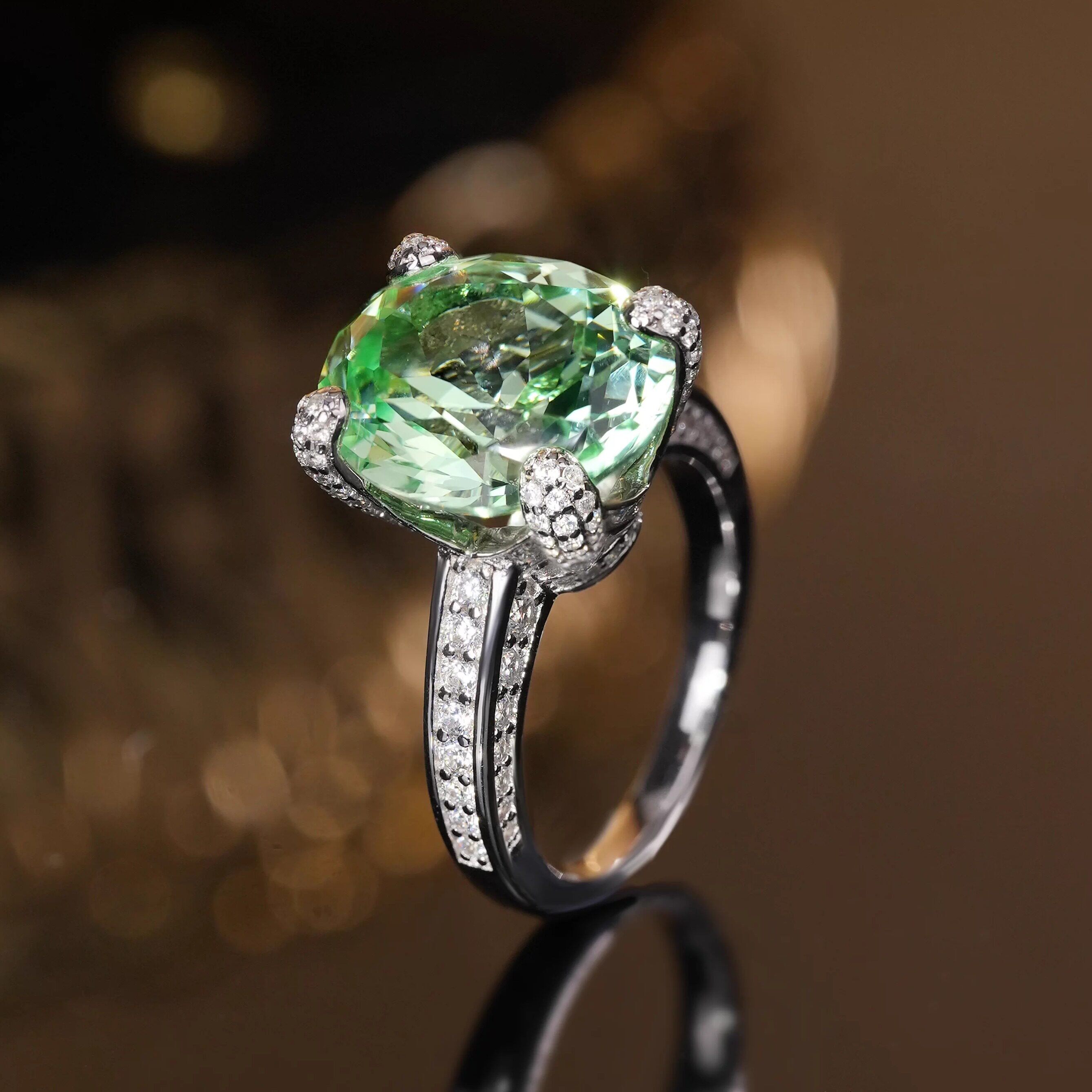 VISING培育绿色蓝宝石【国检】阿富汗薄荷绿碧X效果戒指10ct左右