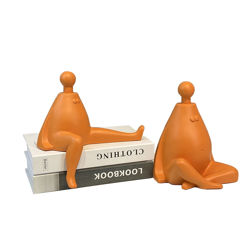北欧橙色抽象卡通坐姿人物摆件家居客厅电视柜软装饰品样板间摆设