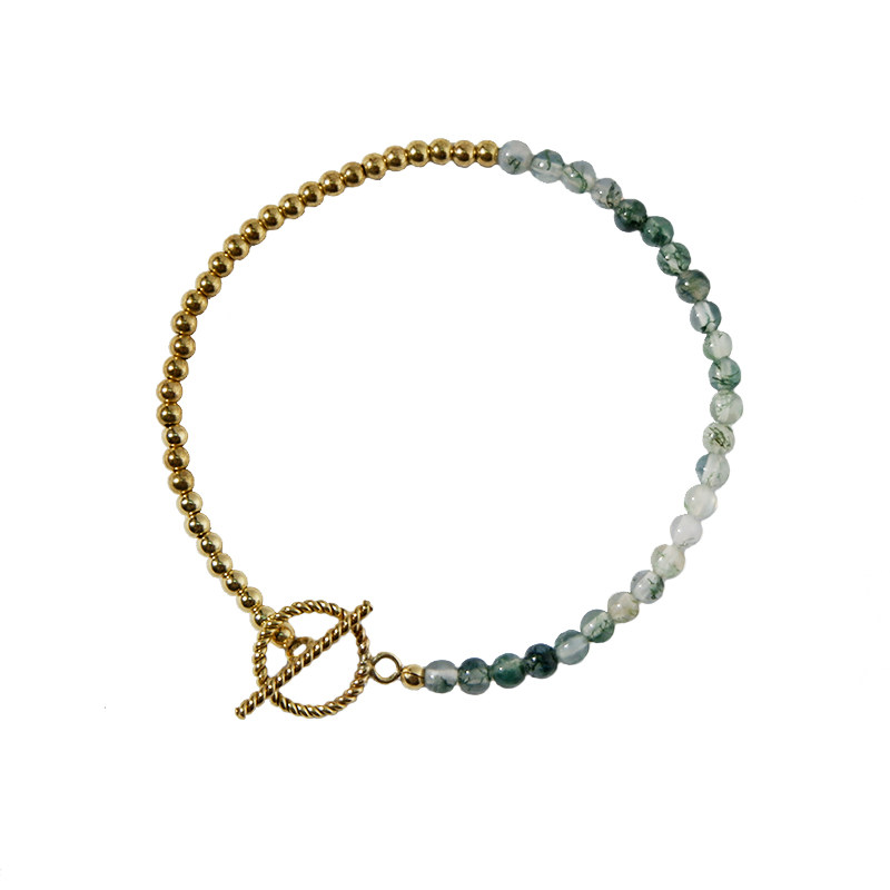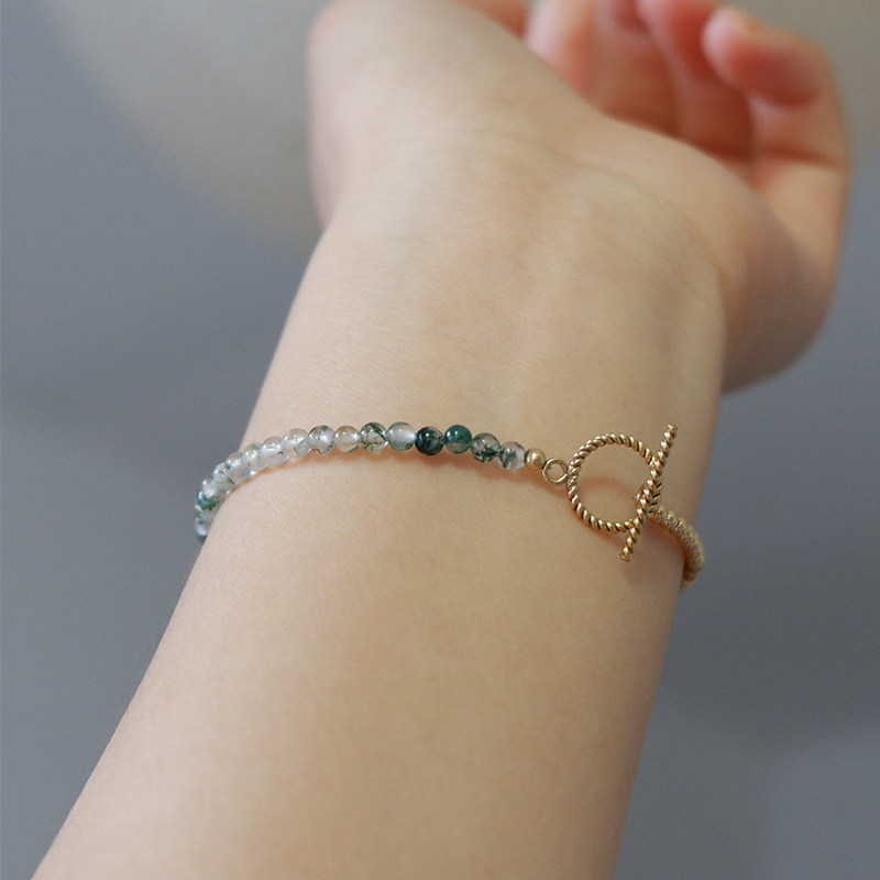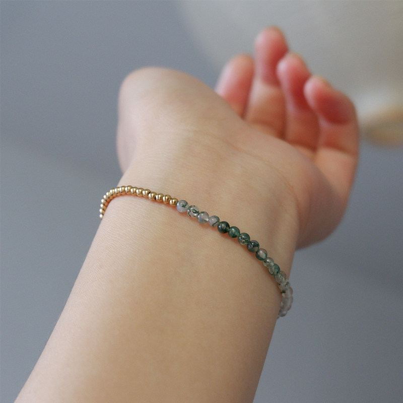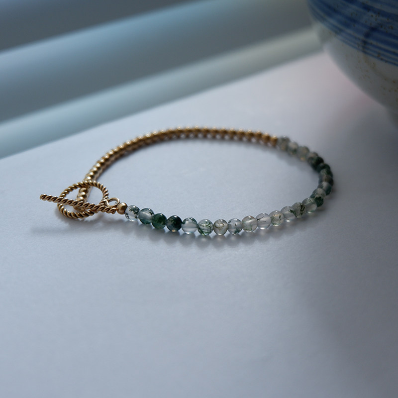 UNELGE手作新品水草玛瑙手链夏日系列绿色系14k包金清新日常女