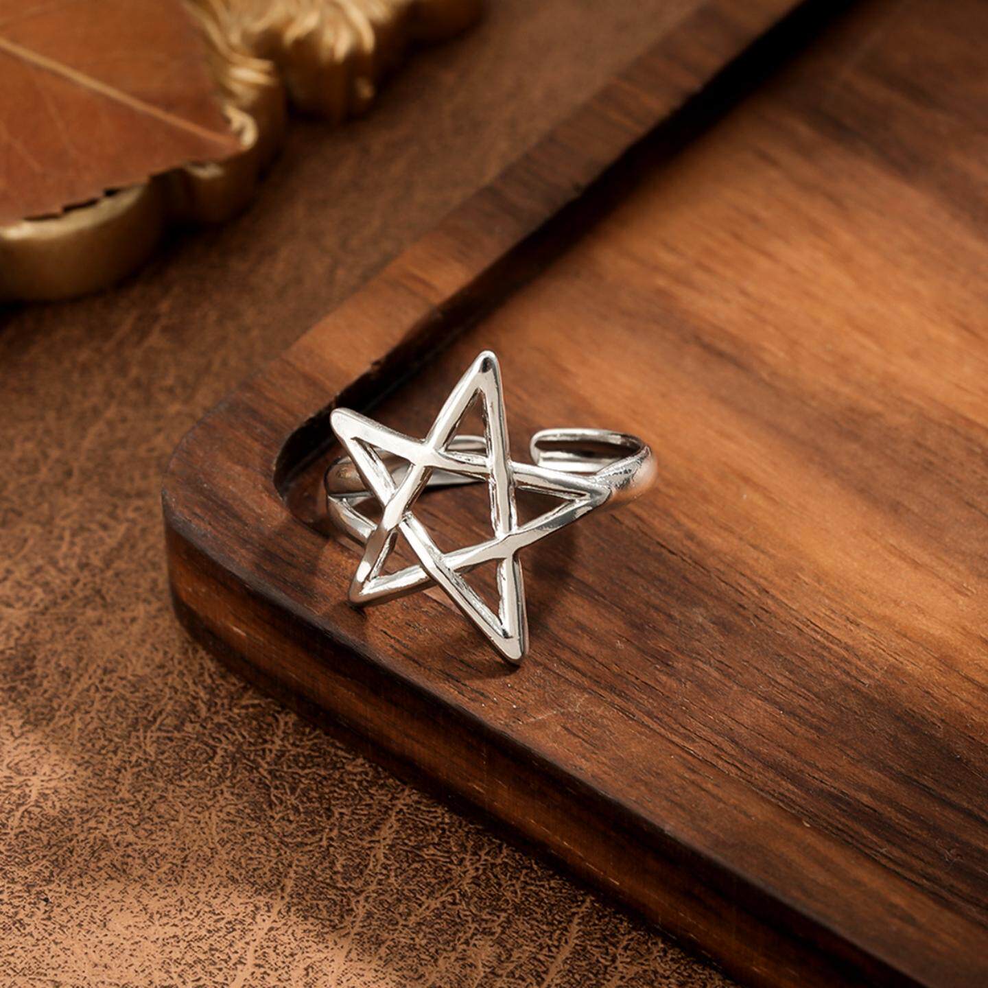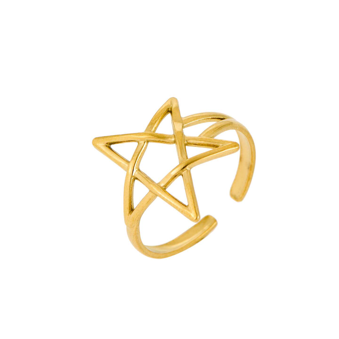欧美饰品镂空五角星戒指镀18金小众设计钛钢指环百搭气质饰品首饰