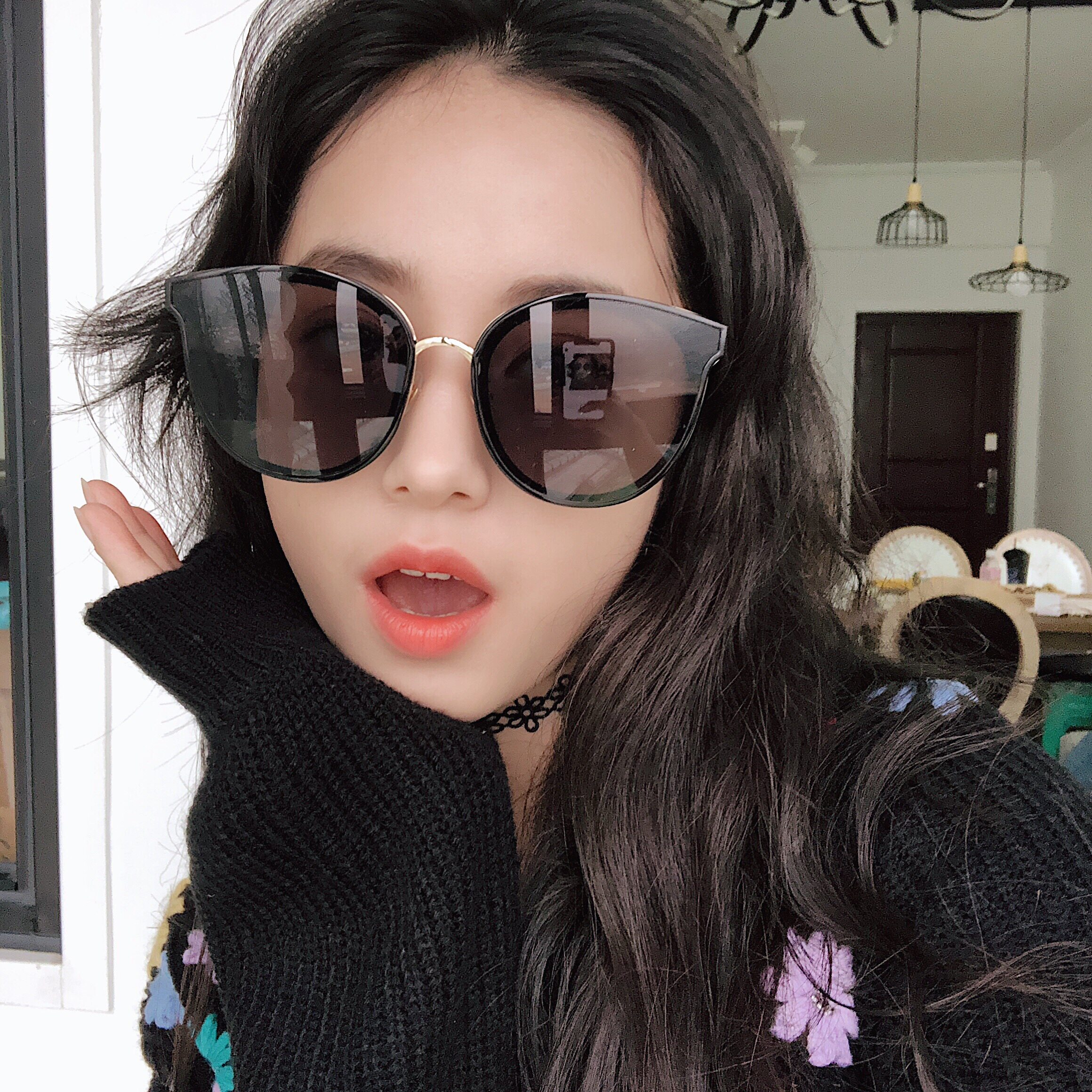 超酷大框显瘦欧美墨镜女潮圆脸复古遮阳时尚太阳镜简约眼镜潮黑色