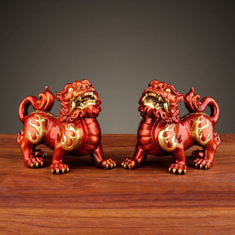 貔貅摆件全铜貔貅一对彩铜皮丘家居客厅装饰品乔迁新居开业礼物