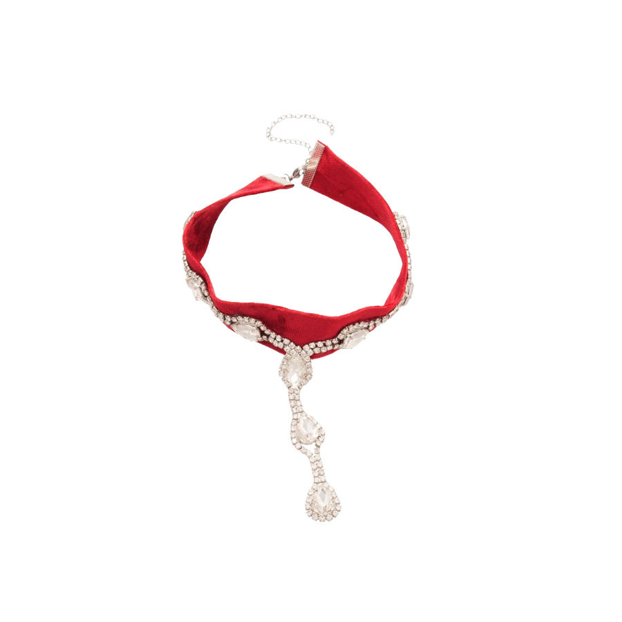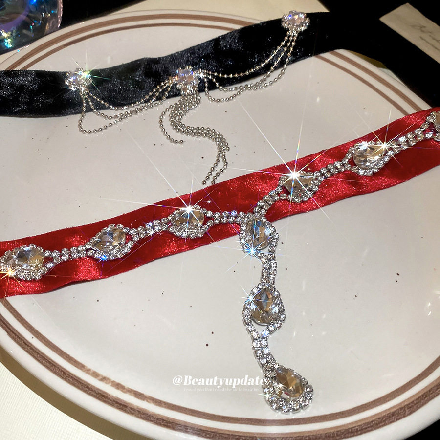 金丝绒镶钻圆形流苏颈链甜酷风小众潮流百搭锁骨链轻奢气质项链女