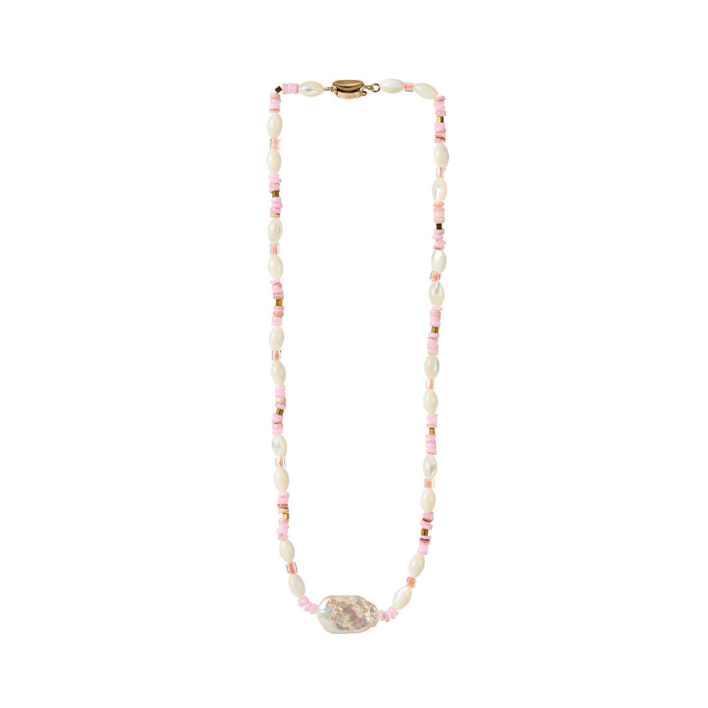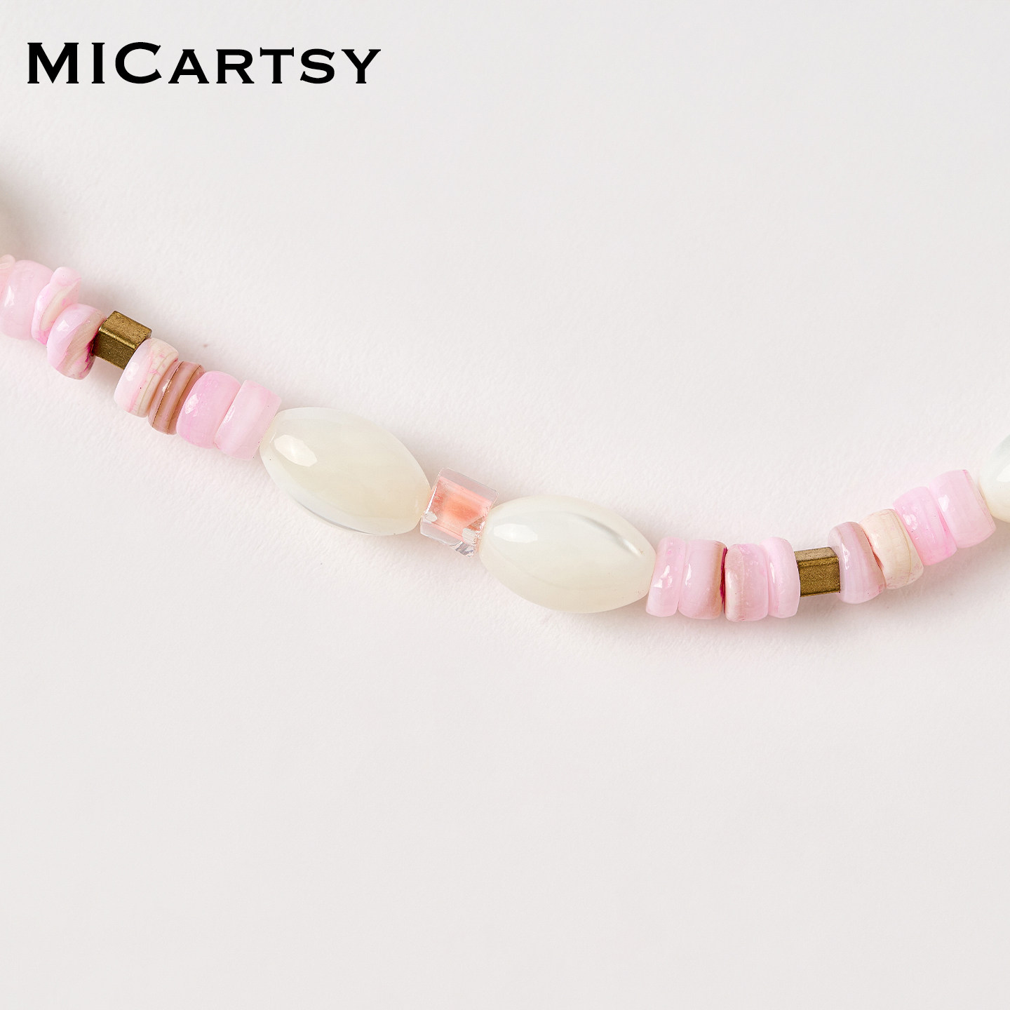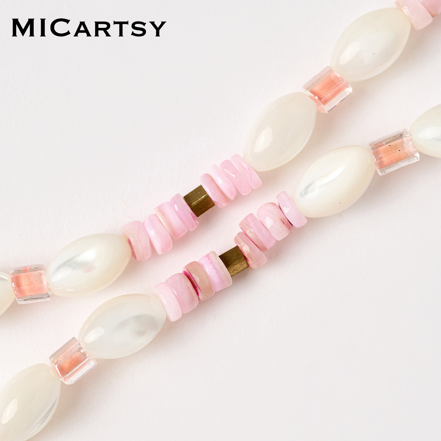 MICartsy王紫珊2025秋冬新款粉白色手工串珠项链