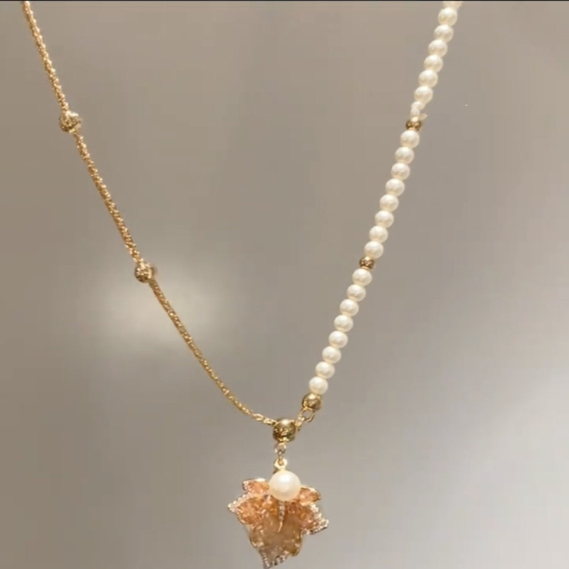 设计感渐变橙色枫叶珠珠锁骨链项链女气质少女感配饰温柔百搭款