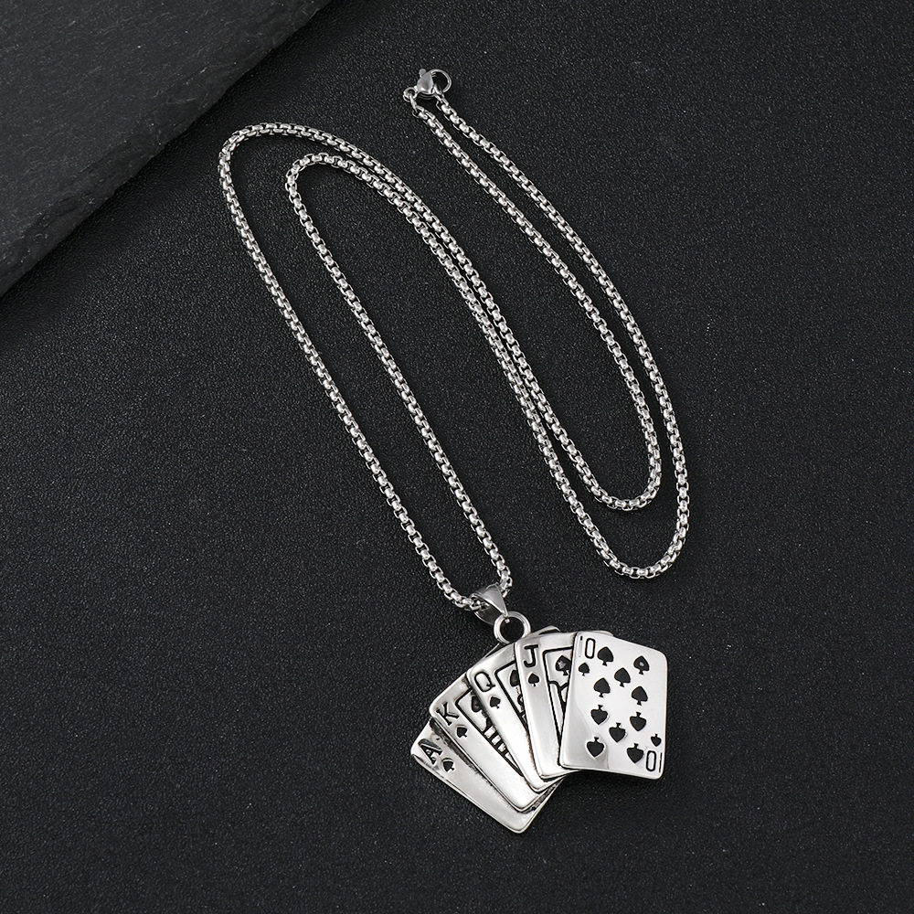 欧美时尚百搭饰品扑克牌同花顺个性铸造钛钢项链毛衣链情侣吊坠女