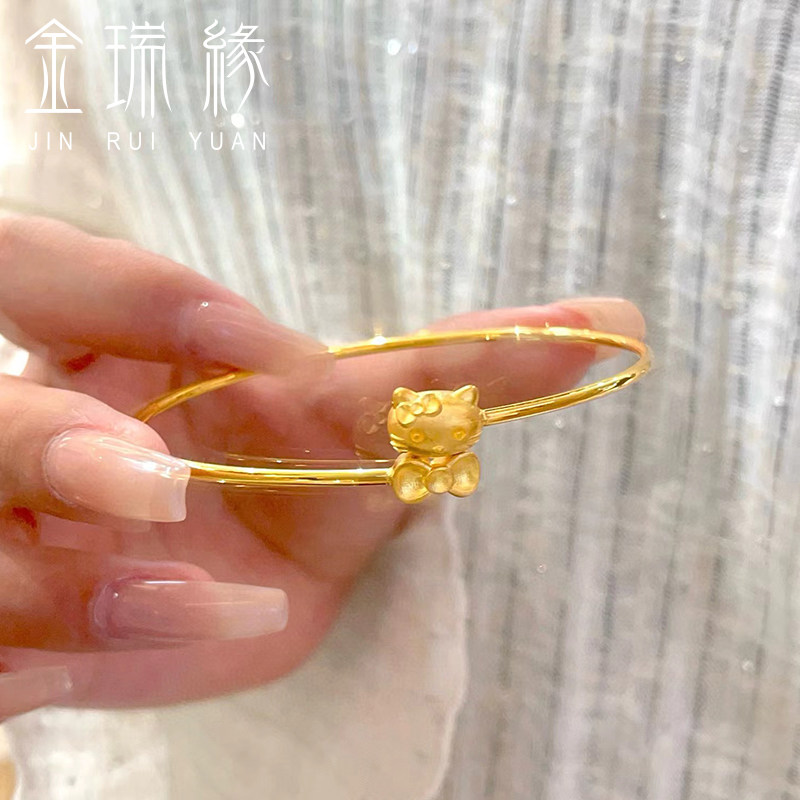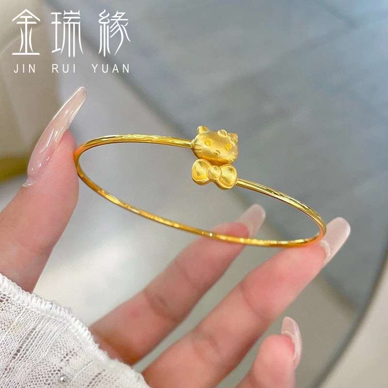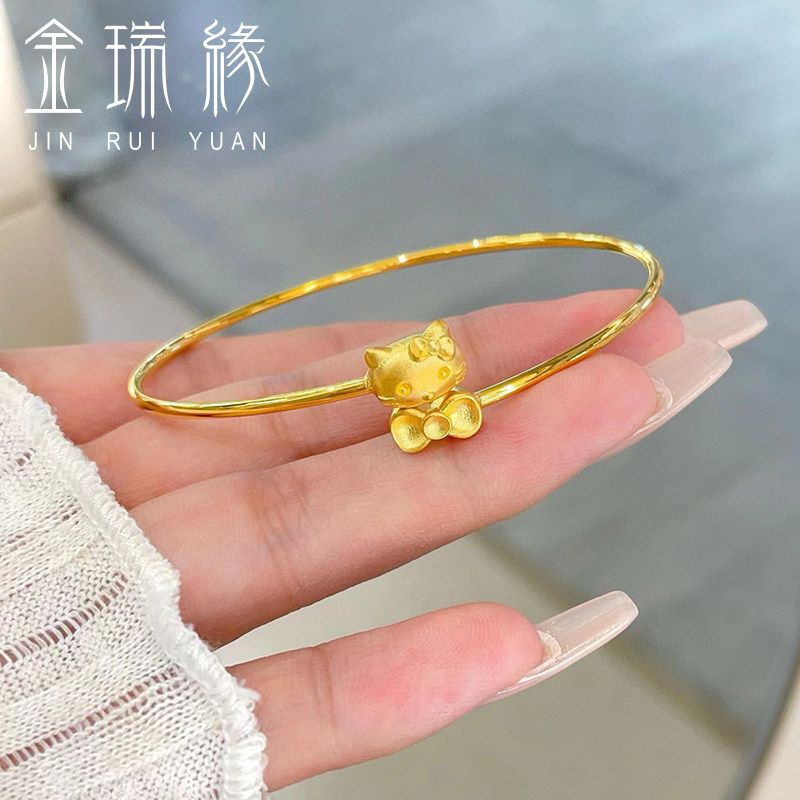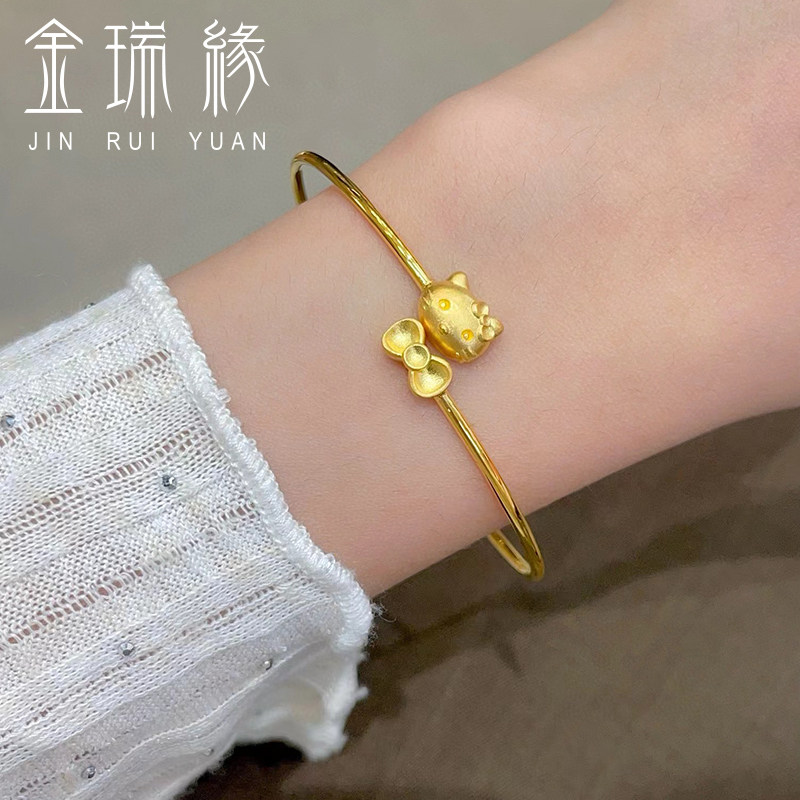 黄金hello kitty手镯女足金999凯蒂猫KT蝴蝶结镯子送女友老婆礼物
