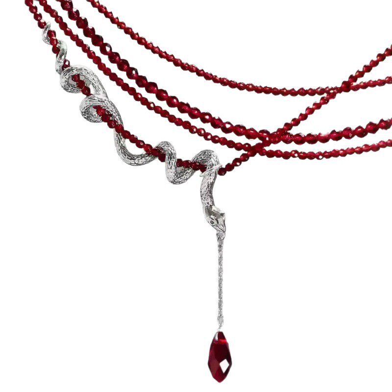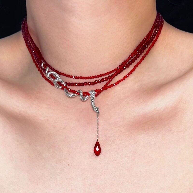 暗黑风多层红色串珠项链女蛇形缠绕水滴吊坠潮酷辣妹chocke锁骨链