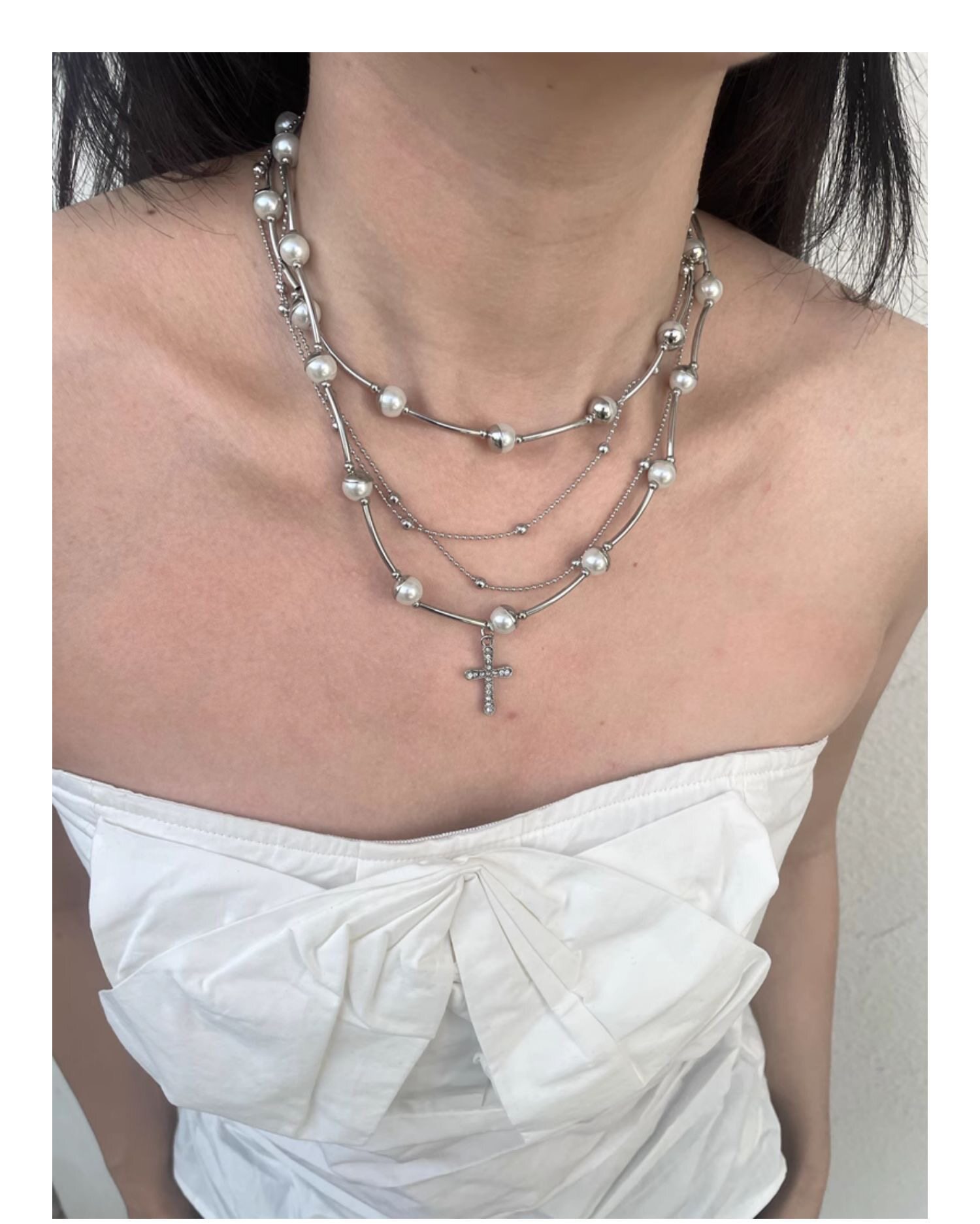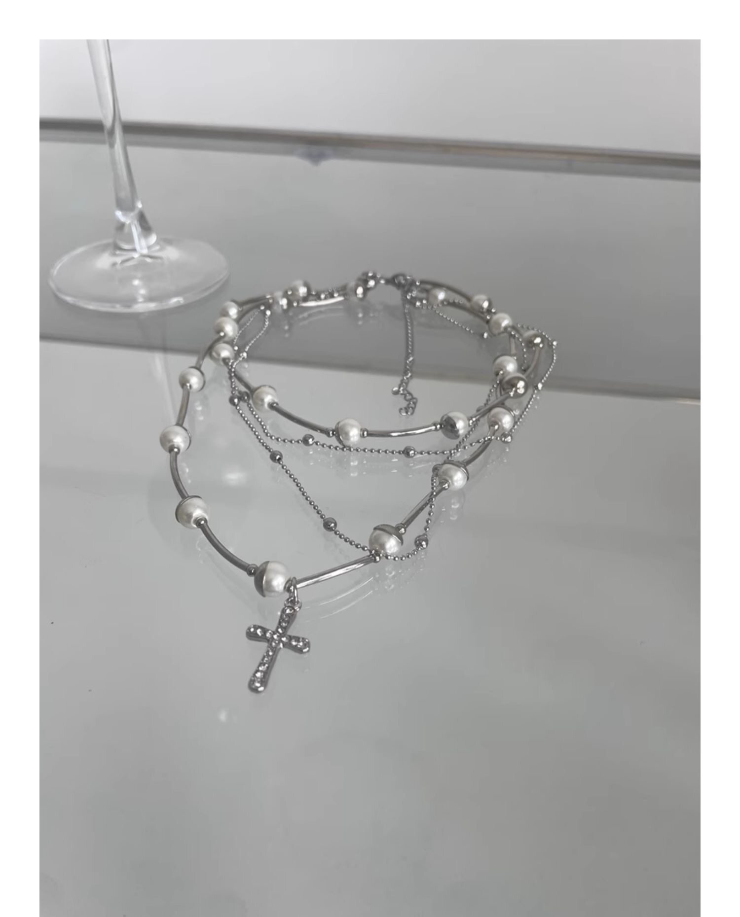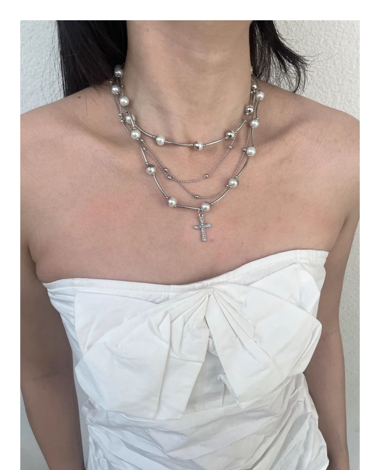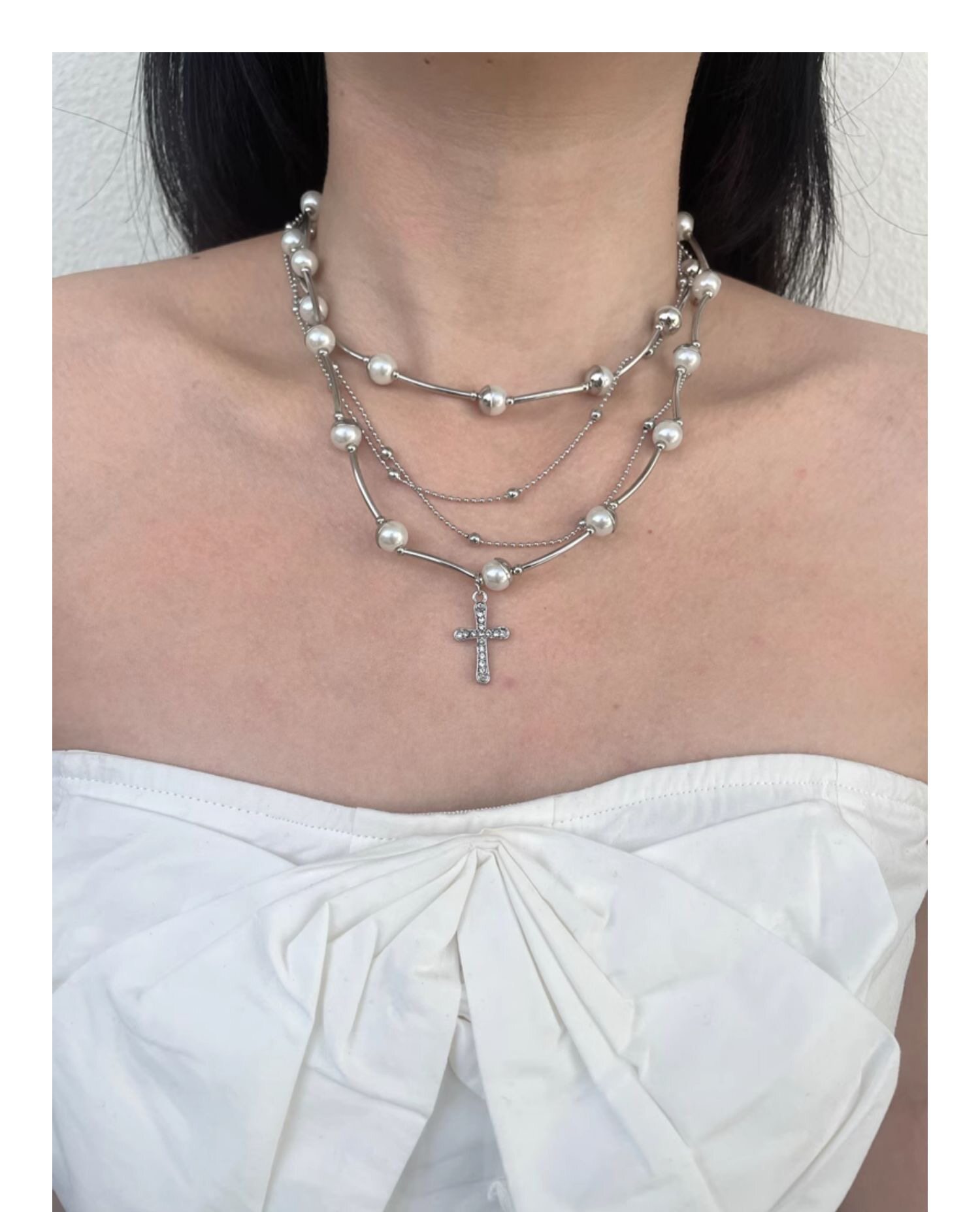 多层叠戴法式珍珠十字架复古设计感ins锁骨链气质高级感颈链百搭