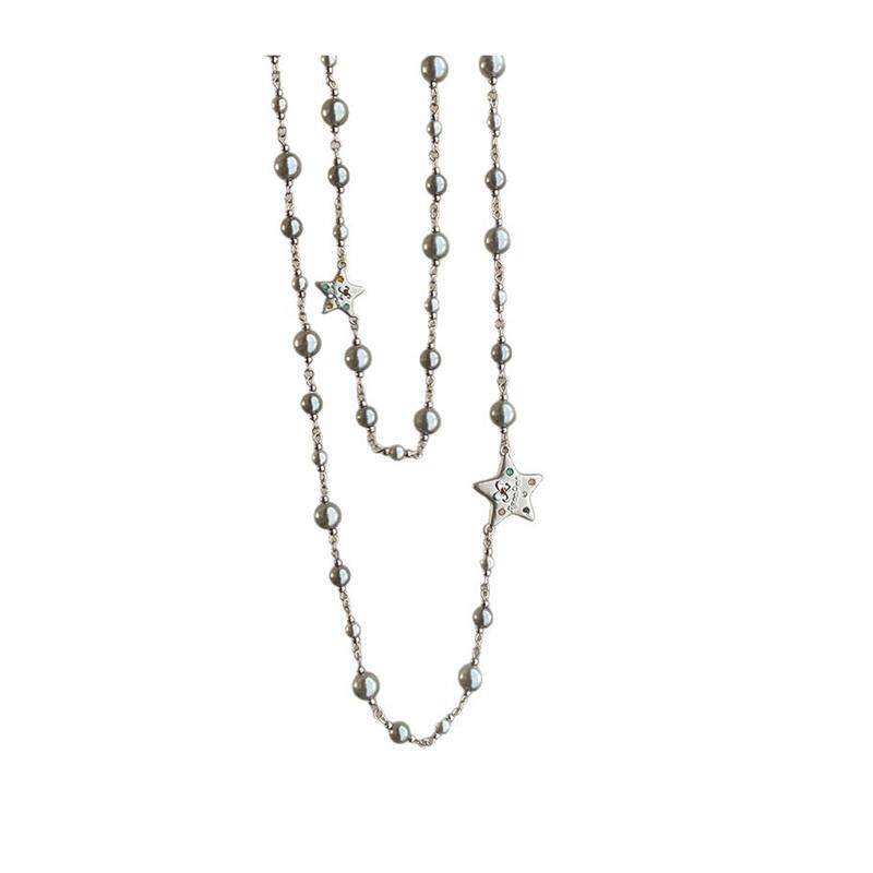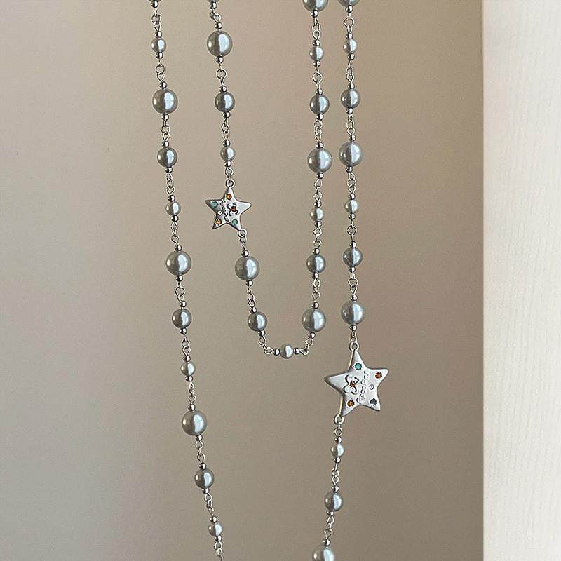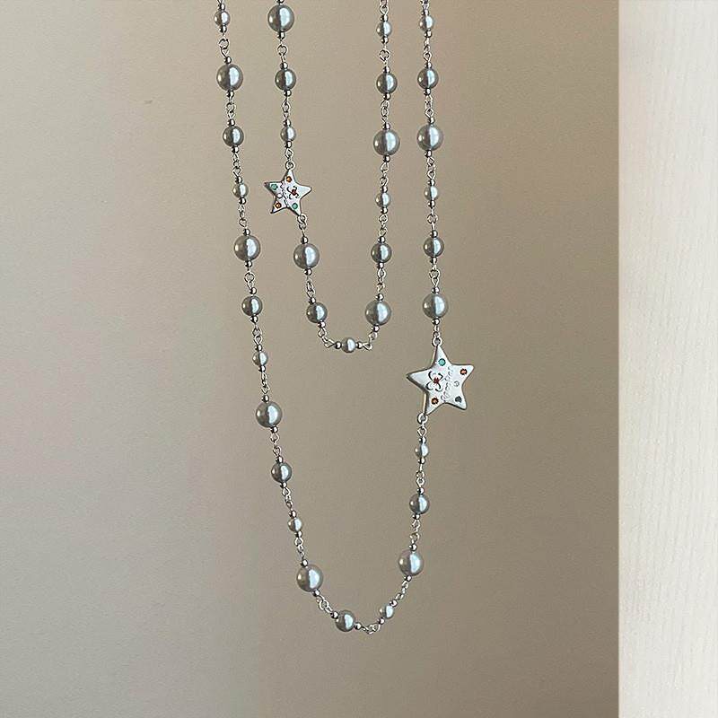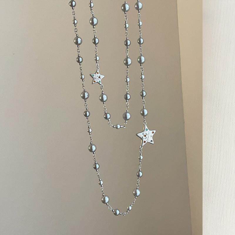 高级感灰色珍珠五角星长款毛衣链女轻奢复古时尚潮流气质百搭项链