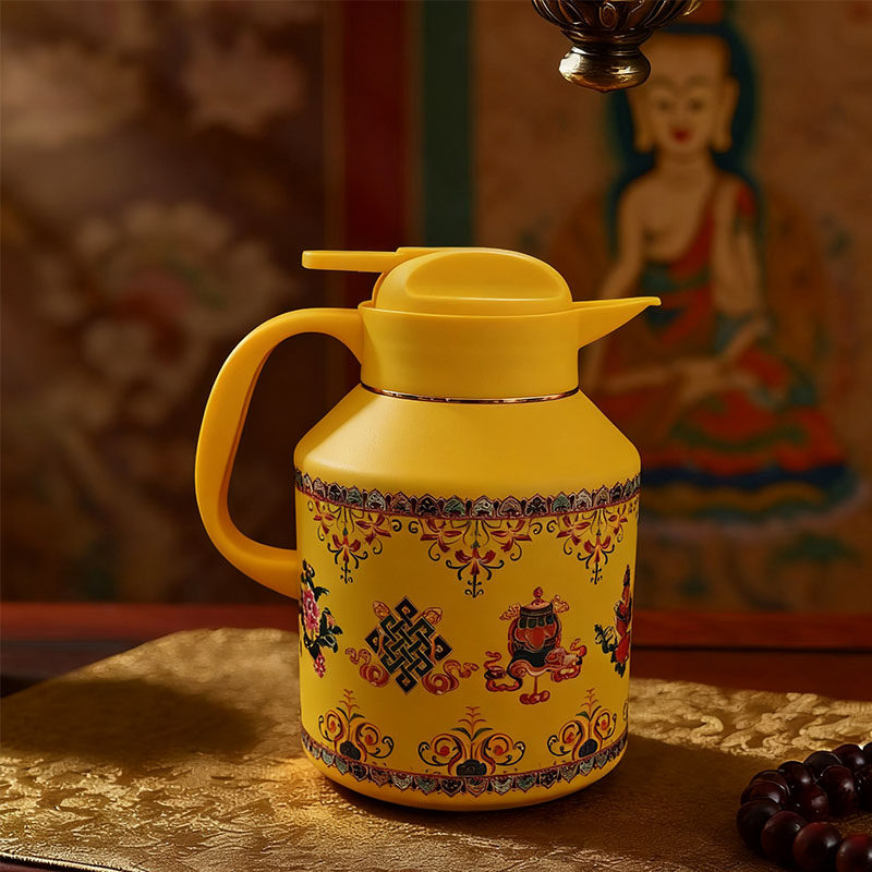 304不锈钢保温壶家用彩绘八吉祥大容量热水壶泡茶壶温水壶暖瓶壶