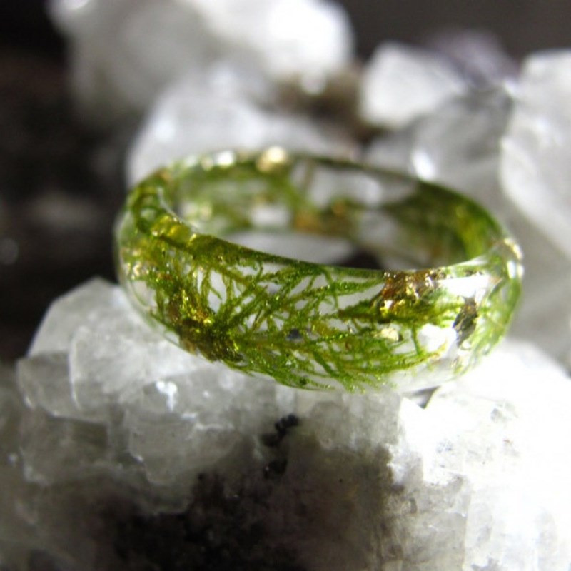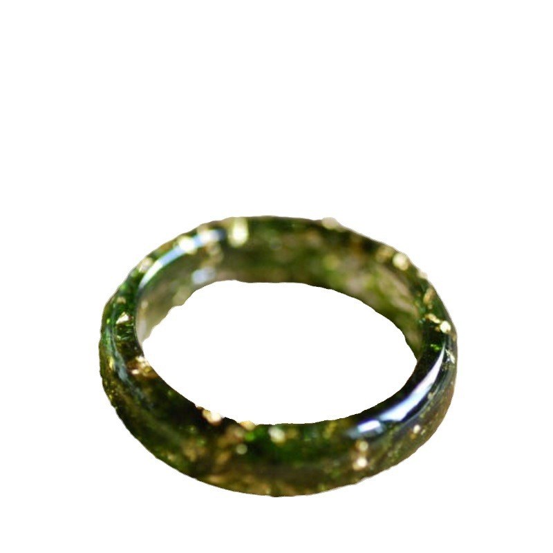 天然水草树脂戒指冰种飘花玉髓指环尾戒复古精品树脂苔藓男女戒指