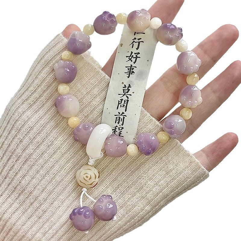 小红书爆款国风招财猫串珠手链炭烧猫爪仿白玉菩提子轻奢小众学生