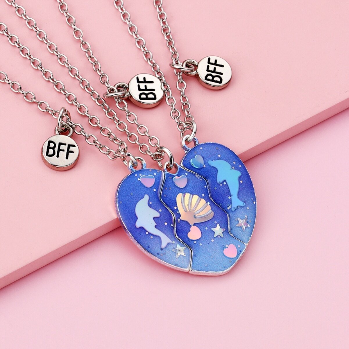 蓝色海洋海豚爱心拼接蝴蝶三人闺蜜项链磁吸儿童生日礼物姐妹挂饰