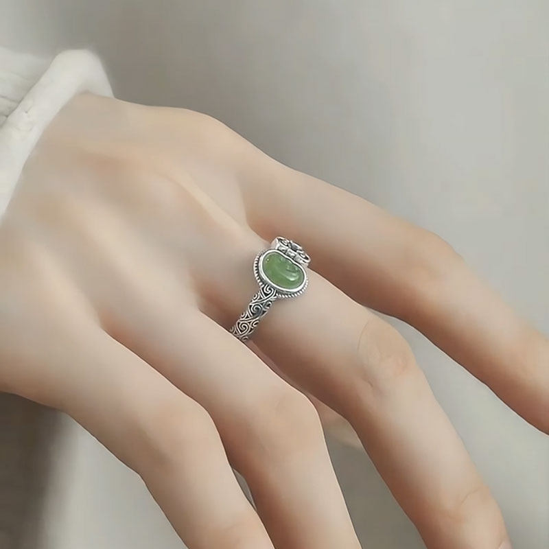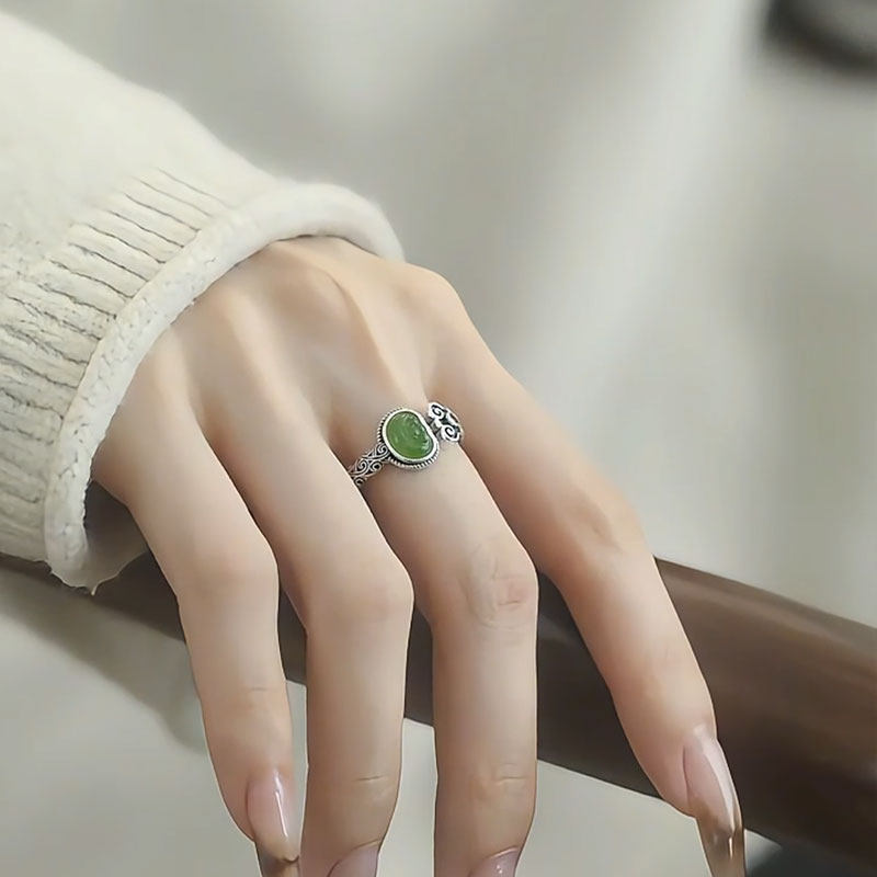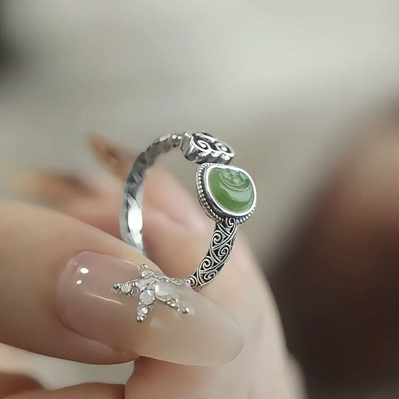 925银如意元宝戒指女新中式小众设计祥云纹碧玉轻奢气质开口指环