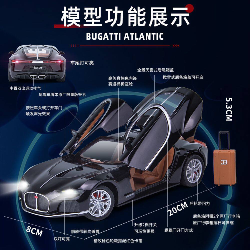 新豪迪1:24布嘉迪AtlanticGT超跑声光回力车玩具仿真合金汽车模型