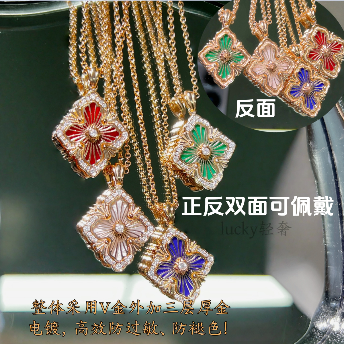 高版本四叶草双面可戴项链女法式镶钻宫廷风高级感白贝母毛衣链