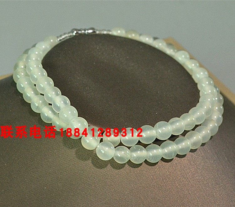 玉石浅绿色项链岫玉圆珠7mm项链diy手工编织冰种玉珠项链