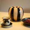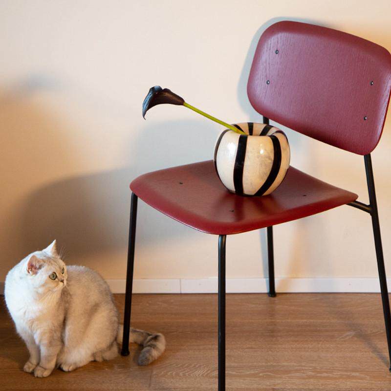 北欧设计感花瓶中古风ins风小众琉璃花瓶黑色条纹高级感插花花器