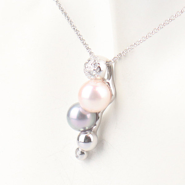 中古「95新」TASAKI(塔思琦)2颗海水珍珠钻石项链K18白金45cm
