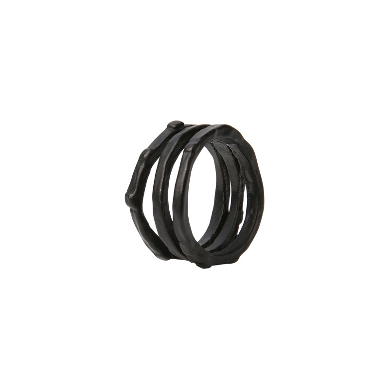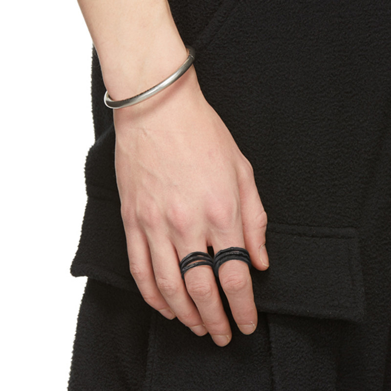GAOSTUDIOS黑色不规则分裂三环戒指暗黑日系手工做旧连体指环男女