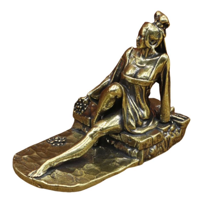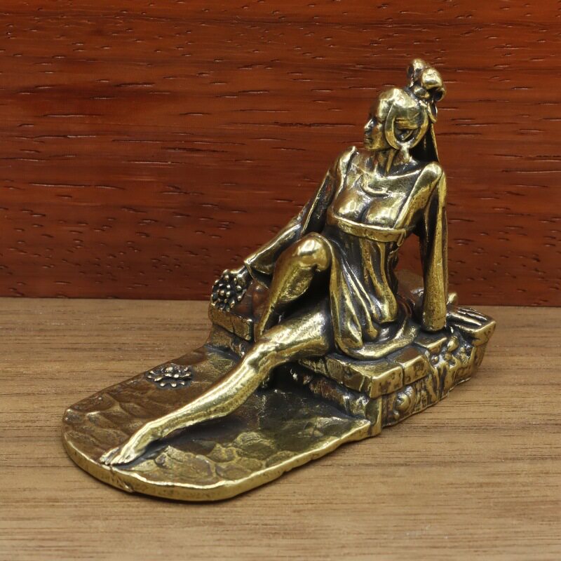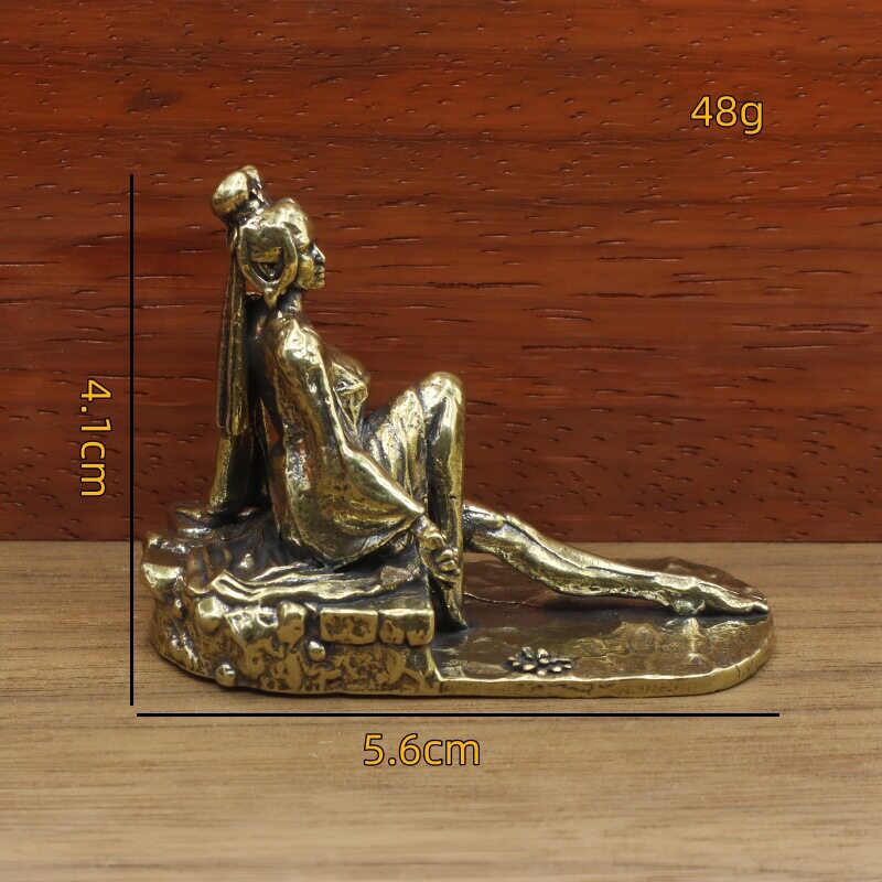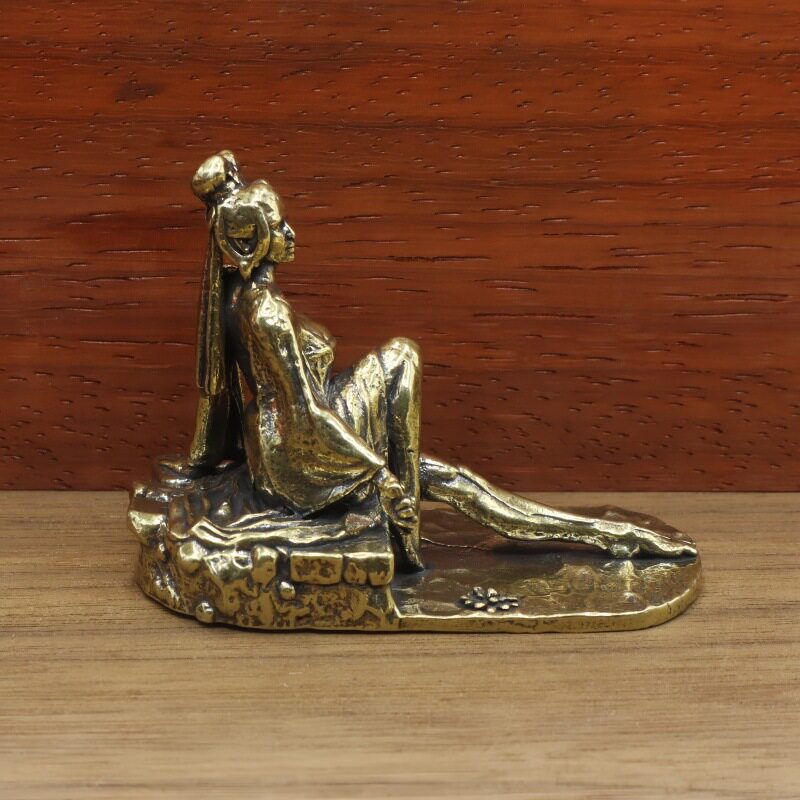 黄铜古装美女工艺品摆件家居办公桌面茶宠坐像创意古典女孩装饰品