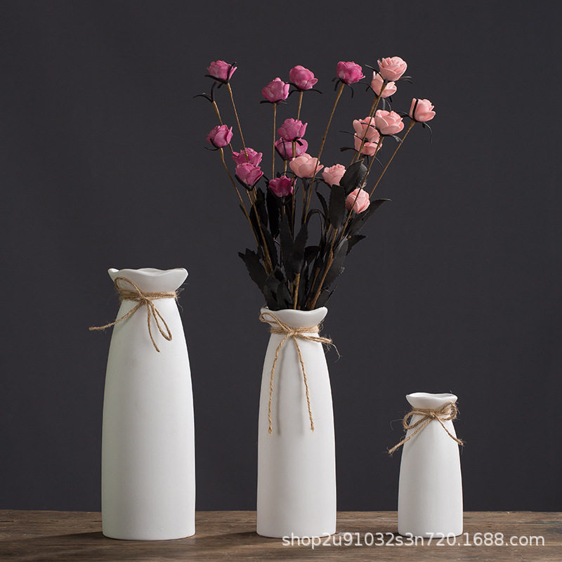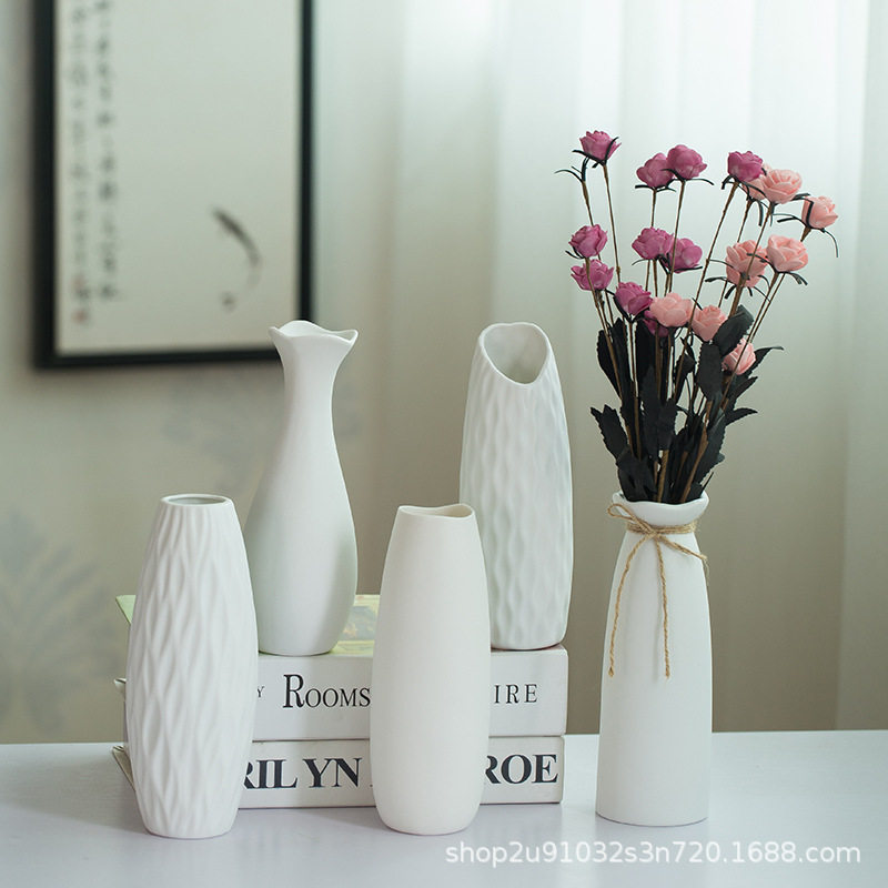 素烧白色陶瓷花瓶现代简约干花插花器创意家居装饰工艺品摆件