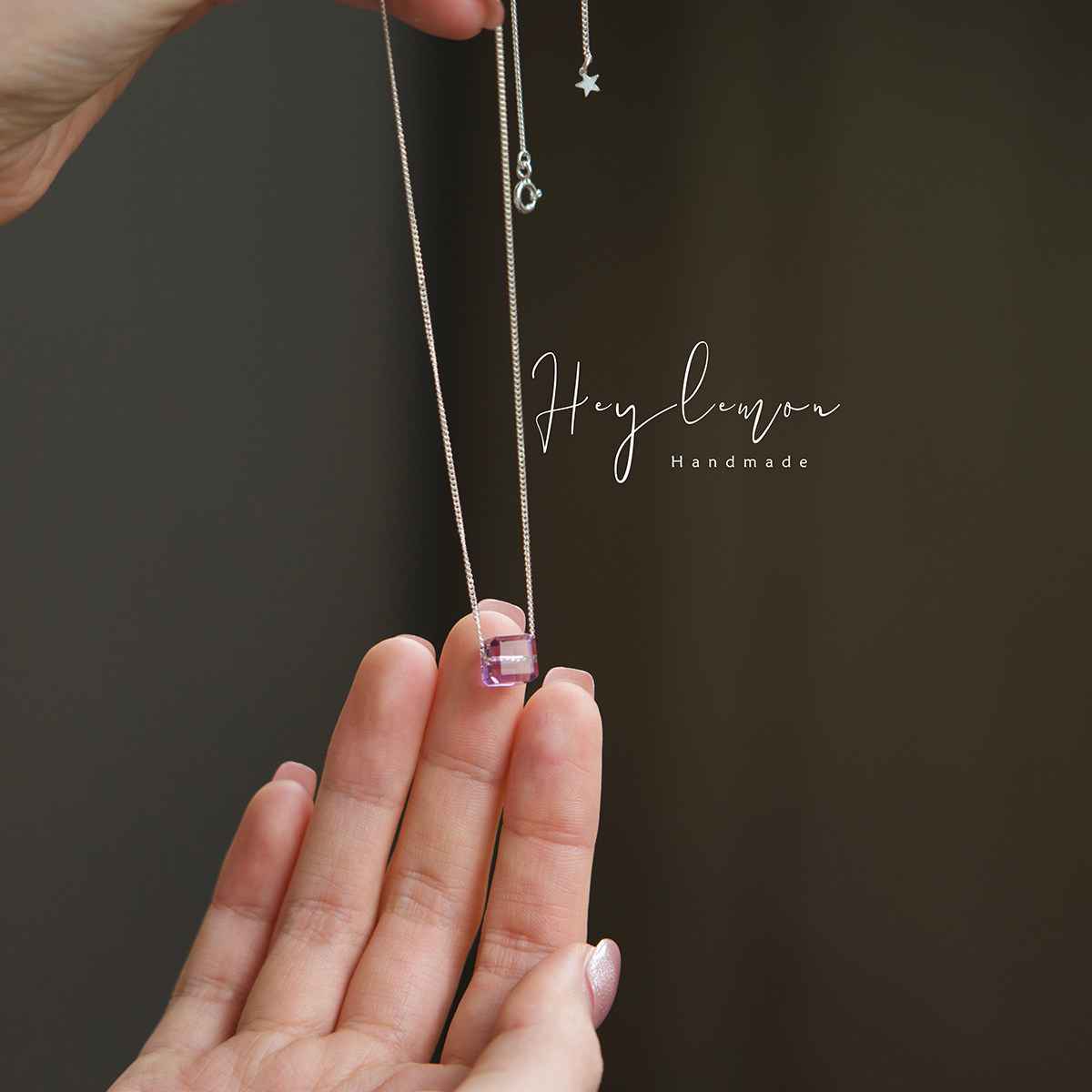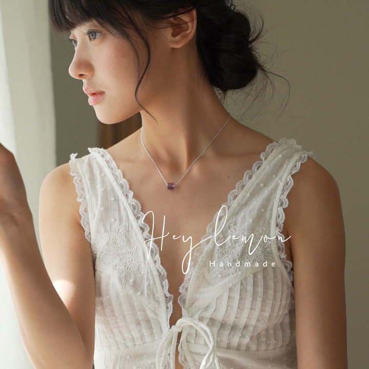 梦幻紫薰衣紫治愈静谧2月生辰石天然紫水晶方糖925纯银项链