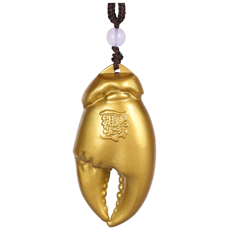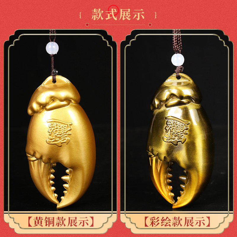 手中有钱纯黄铜实心螃蟹钳手把件解压招财车挂件桌面摆件创意礼品