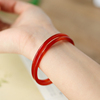 天然网红玉髓手镯镯叮当一对古风汉服红色少女款红玛瑙大码小细条