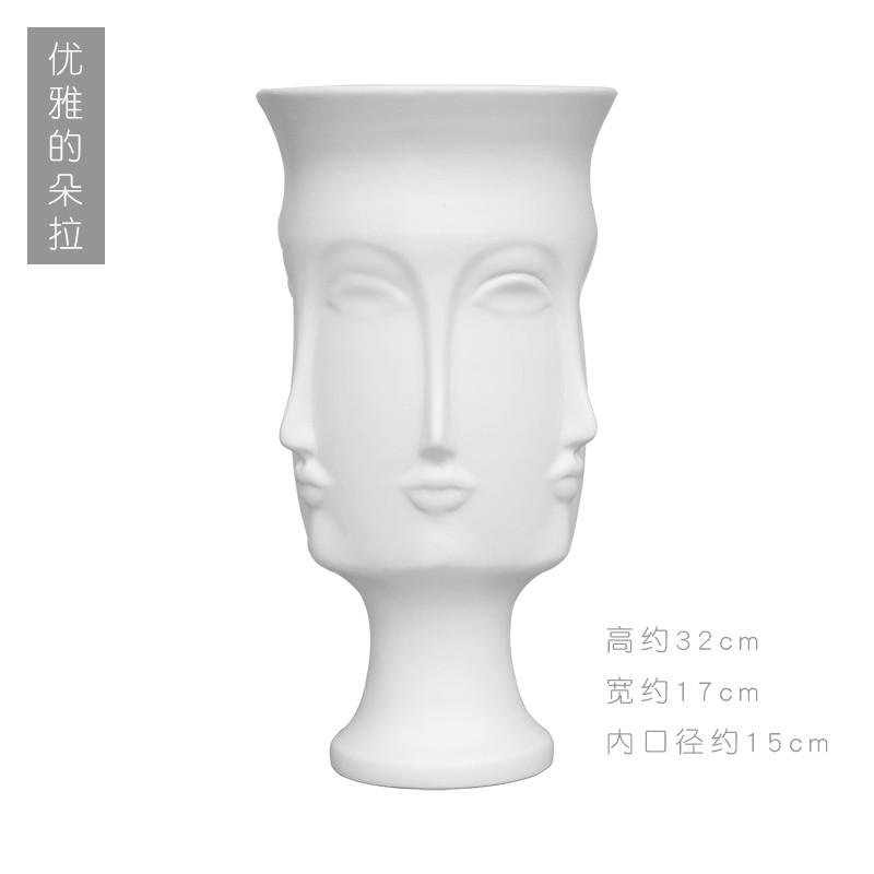 简约现代白色人脸花瓶客厅创意插花器小花瓶陶瓷摆件家用小装饰品