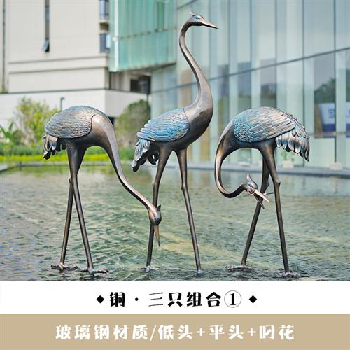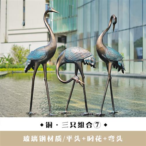 户外仿铜仙鹤雕塑玻璃钢园林水景装饰品景观庭院公园丹顶鹤鸟摆件
